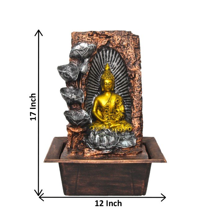 Lord Buddha indoor water fountain is a beautiful showpiece for home decor. This indoor water fountain not only looks great but also brings positivity to your space. Sound effect of water fountain helps create a positive and harmonious environment. As a home decorative water fountain, it adds a touch of elegance and peace to your living space. This Lord Buddha also makes for a wonderful decorative gift item for home decoration, ideal for housewarmings or special occasions. An indoor water fountain is best decoration and thoughtful gift. Whether placed in a living room, home, office, showroom, restaurant, hotel and wedding hall, the gentle sound of flowing water can enhance the beauty of area. As a gift, an indoor water fountain is not only visually appealing but also symbolizes harmony and balance. Water fountain is best ideal decorative gift choice as birthday, housewarming, office / shop inauguration, New Year, Wedding, Corporate Diwali gifts or any occasion.
