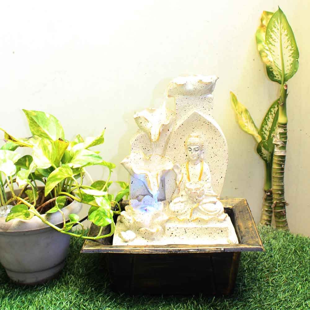 Floral Art Buddha water fountain for home vastu With Led Light - sandstone Finish 38 cm G57GX0203IGDMX