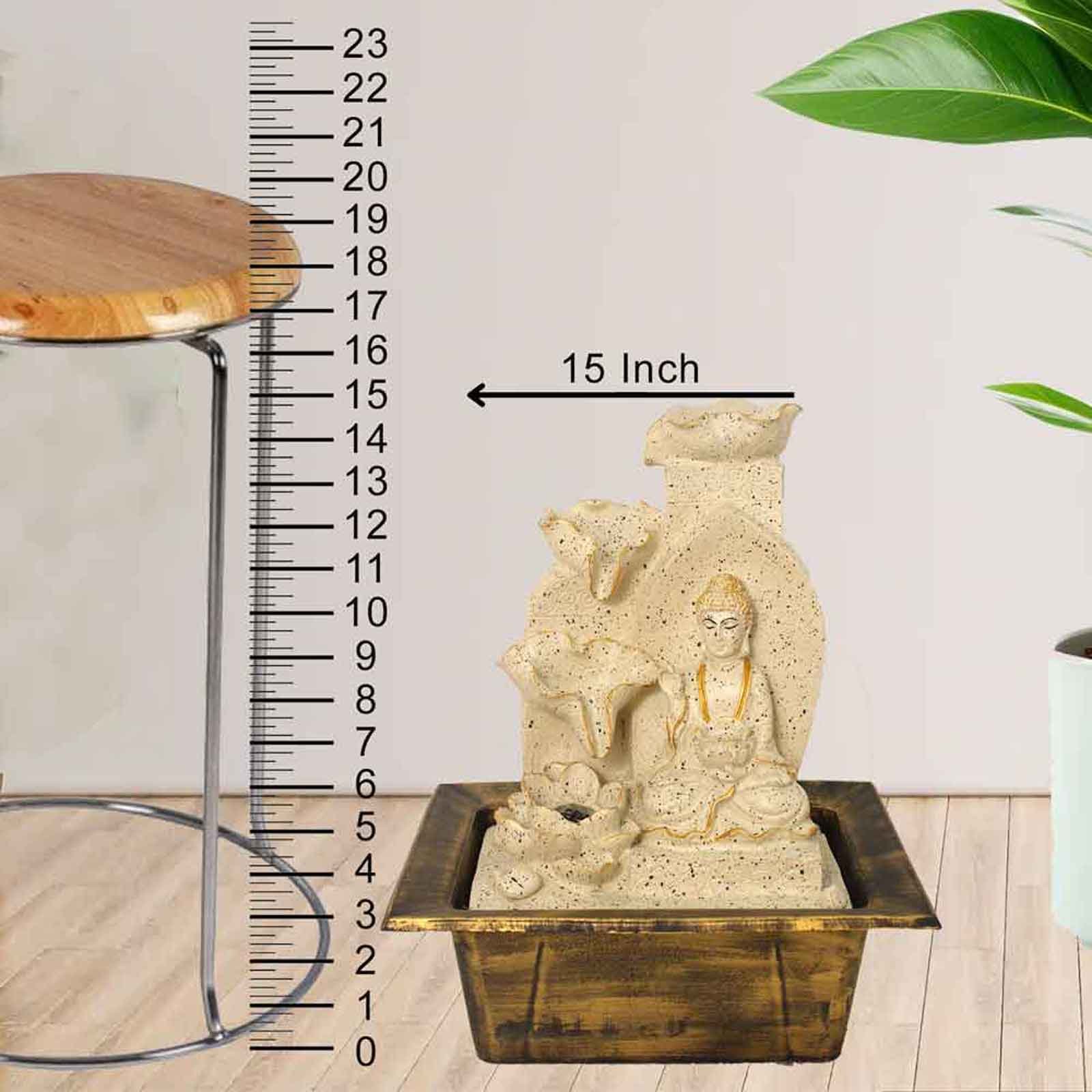 Namaskar Buddha water fountain indoor feng shui With Led Light - Metalic Antique...