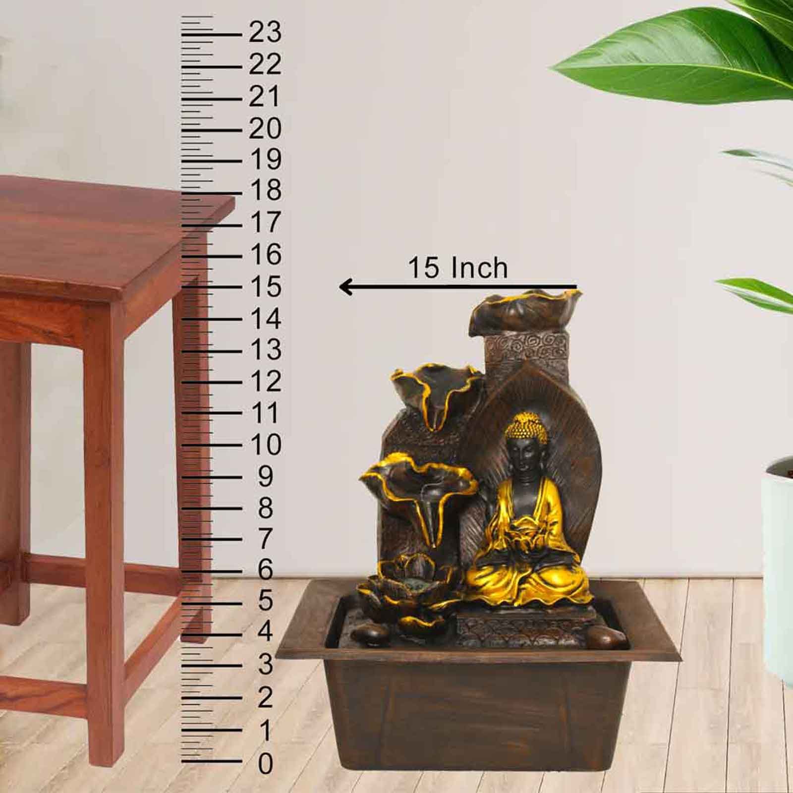 Floral Art Buddha water fountain for house With Led Light - Metalic Antique Finish 38 cm G57GX0203AGAMX