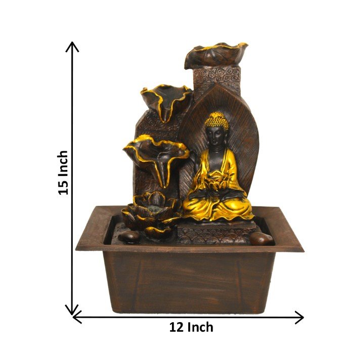Lord Buddha indoor water fountain is a beautiful showpiece for home decor. This indoor water fountain not only looks great but also brings positivity to your space. Sound effect of water fountain helps create a positive and harmonious environment. As a home decorative water fountain, it adds a touch of elegance and peace to your living space. This Lord Buddha also makes for a wonderful decorative gift item for home decoration, ideal for housewarmings or special occasions. An indoor water fountain is best decoration and thoughtful gift. Whether placed in a living room, home, office, showroom, restaurant, hotel and wedding hall, the gentle sound of flowing water can enhance the beauty of area. As a gift, an indoor water fountain is not only visually appealing but also symbolizes harmony and balance. Water fountain is best ideal decorative gift choice as birthday, housewarming, office / shop inauguration, New Year, Wedding, Corporate Diwali gifts or any occasion.