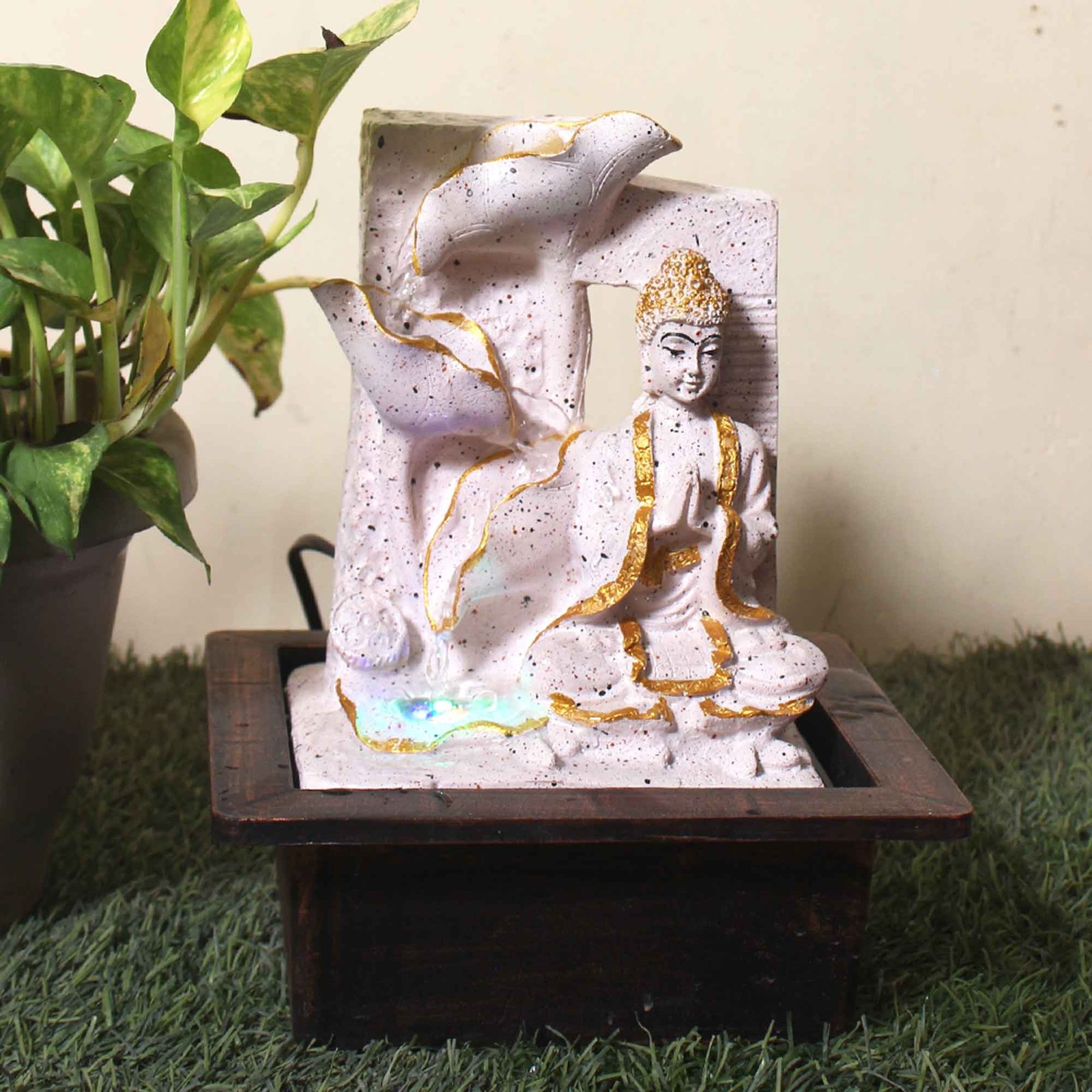 Nature Buddha mini fountain for home With Led Light - Metalic Antique Finish 25 ...