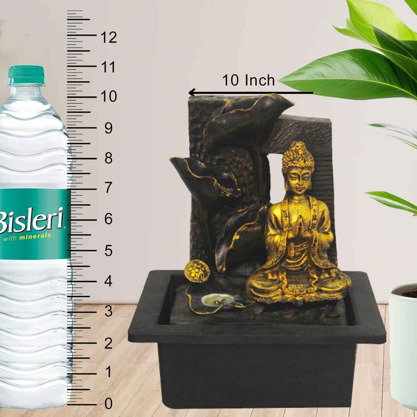 Flower Art Buddha best indoor water fountain With Led Light - Metalic Antique Finish 25 cm G57GX0482AGAMX