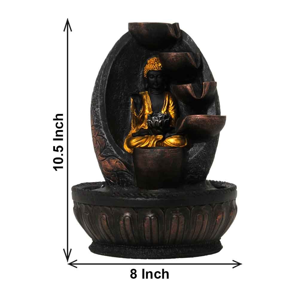 Marble Dust Buddha tabletop waterfall With Led Light - Metalic Antique Finish 38...
