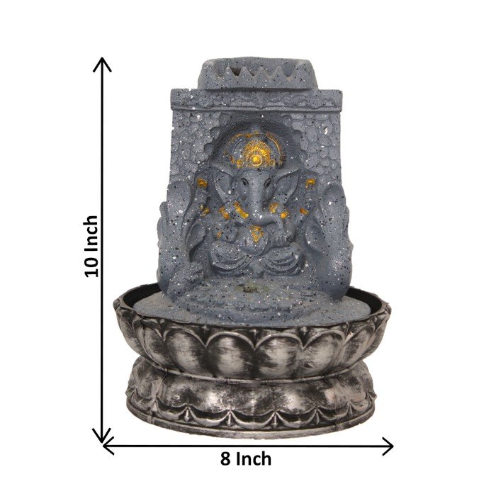 Decorative Ganesh small water fountain for garden With Led Light - Metalic Antiq...