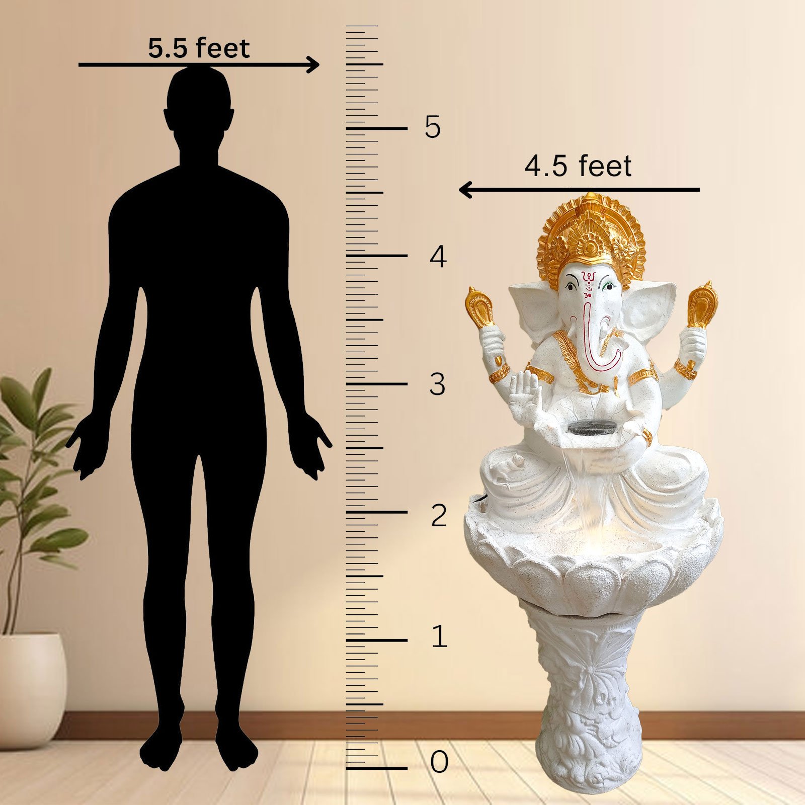 Lord Ganesha indoor outdoor FRP Fiber water fountain is a beautiful showpiece for home decor. This indoor water fountain not only looks great but also brings positivity to your space. Sound effect of water fountain helps create a positive and harmonious environment. As a home decorative water fountain, it adds a touch of elegance and peace to your living space. This Lord Ganesha also makes for a wonderful decorative gift item for home decoration, ideal for housewarmings or special occasions. An indoor water fountain is best decoration and thoughtful gift. Whether placed in a living room, home, office, showroom, restaurant, hotel and wedding hall, the gentle sound of flowing water can enhance the beauty of area. As a gift, an indoor water fountain is not only visually appealing but also symbolizes harmony and balance. Water fountain is best ideal decorative gift choice as birthday, housewarming, office / shop inauguration, New Year, Wedding, Corporate Diwali gifts or any occasion.