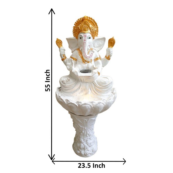 God Ganesh with Pillar outdoor water fountain for home big size Fiber Antique me...