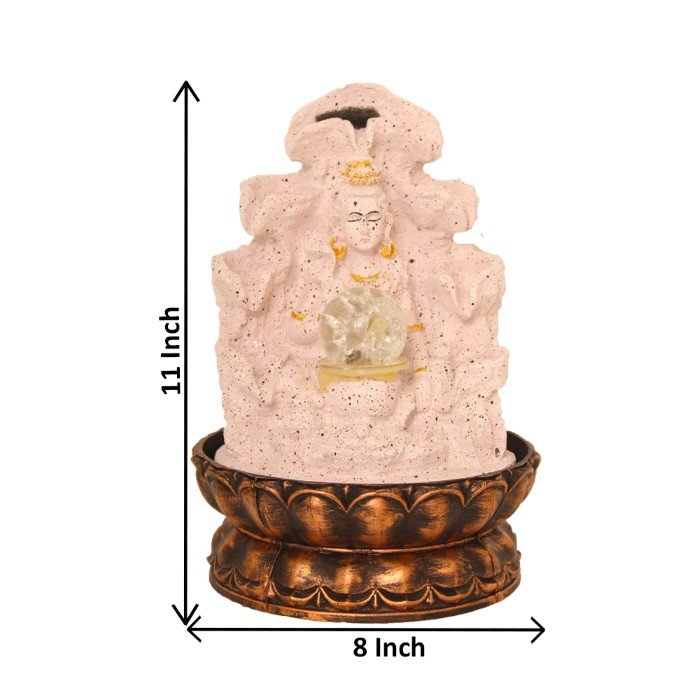 Lord Shiva indoor water fountain with crystal ball is a beautiful showpiece for home decor. This indoor water fountain not only looks great but also brings positivity to your space. Sound effect of water fountain helps create a positive and harmonious environment. As a home decorative water fountain, it adds a touch of elegance and peace to your living space. This Lord Shiva also makes for a wonderful decorative gift item for home decoration, ideal for housewarmings or special occasions. An indoor water fountain is best decoration and thoughtful gift. Whether placed in a living room, home, office, showroom, restaurant, hotel and wedding hall, the gentle sound of flowing water can enhance the beauty of area. As a gift, an indoor water fountain is not only visually appealing but also symbolizes harmony and balance. Water fountain is best ideal decorative gift choice as birthday, housewarming, office / shop inauguration, New Year, Wedding, Corporate Diwali gifts or any occasion.