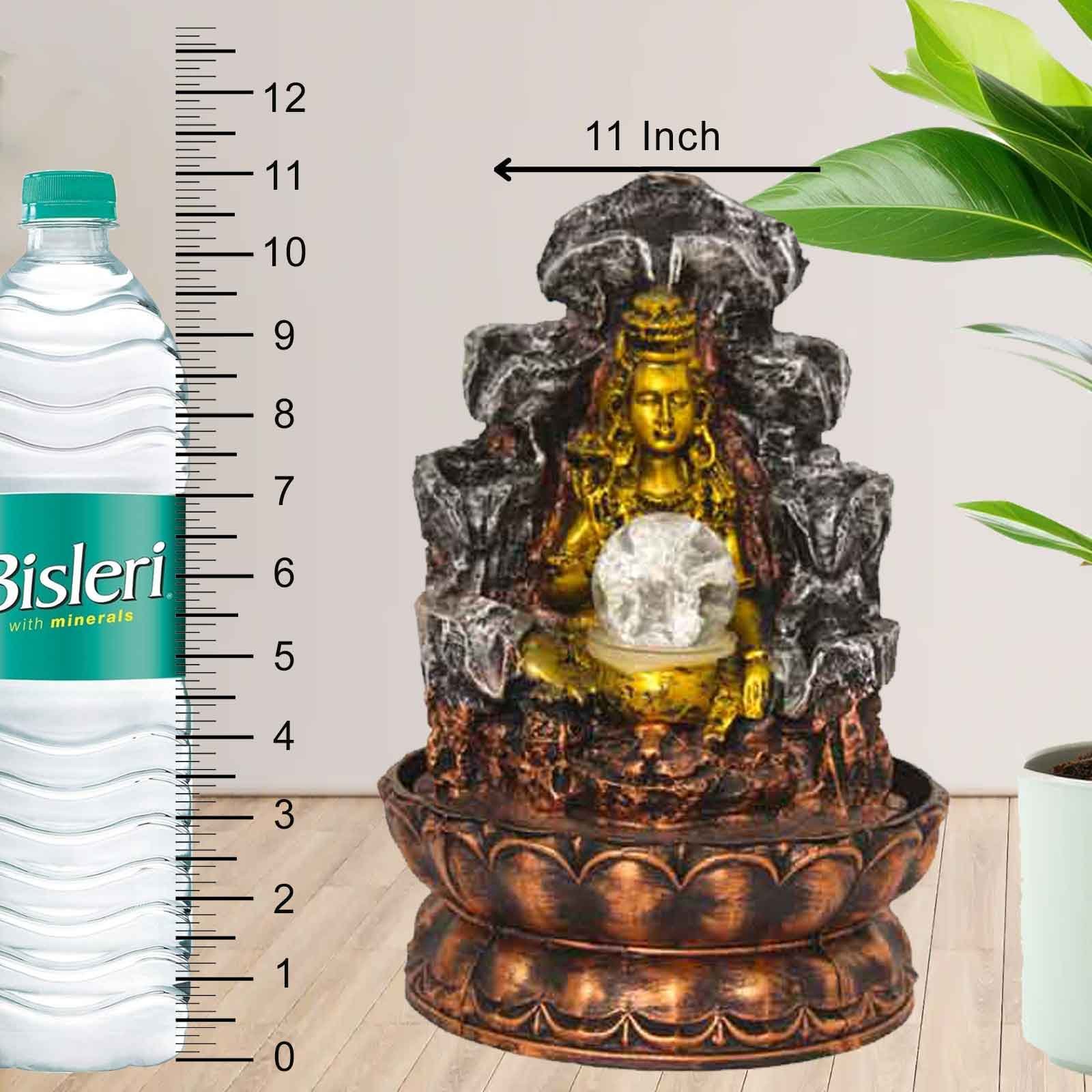 God Shiv inhouse water fountain With Led Light & Crystal Ball - Metalic Antique Finish 28 cm G57GX0458MGAMX