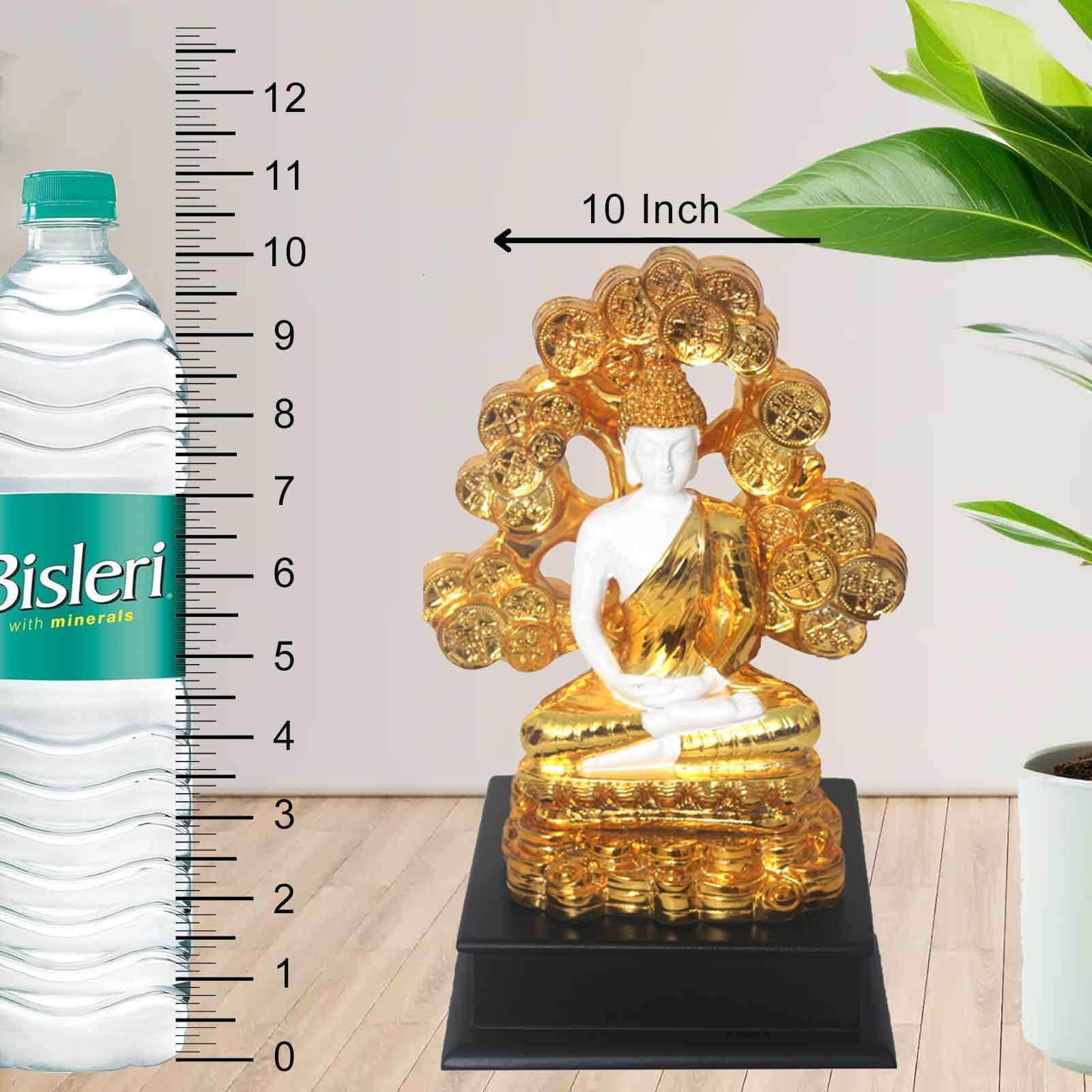 Gold Plated Coin Buddha statue for tv unit and Raksha Bandhan Gift 25 cm G82GX0006W
