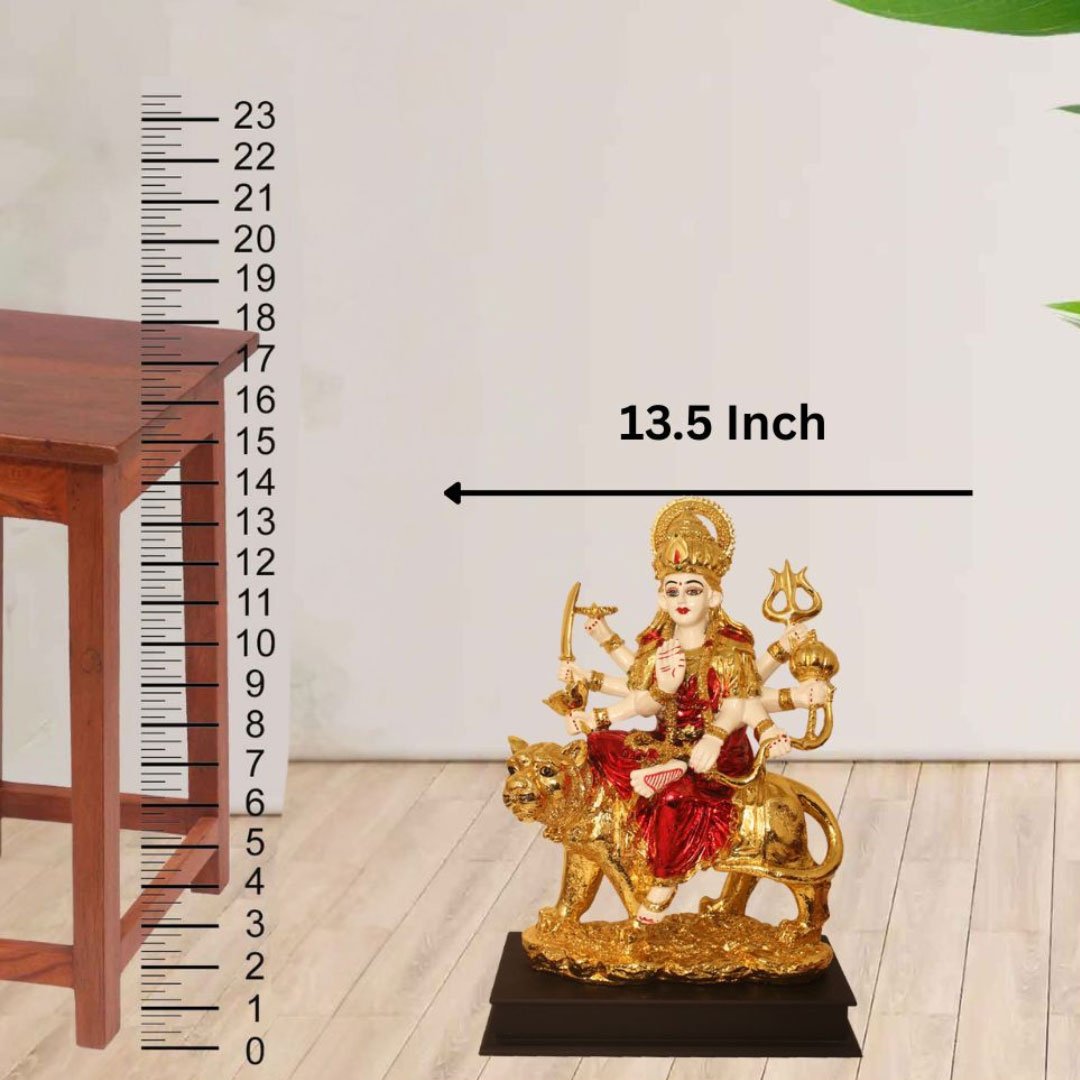 Make in India Gold Plated Durga Idol is made by professional artisans using high quality row material. Great look with unfadable color. Showpiece direct from factory at wholesale price This Showpiece is easily cleanable by wet/Dry Cotton Cloth.