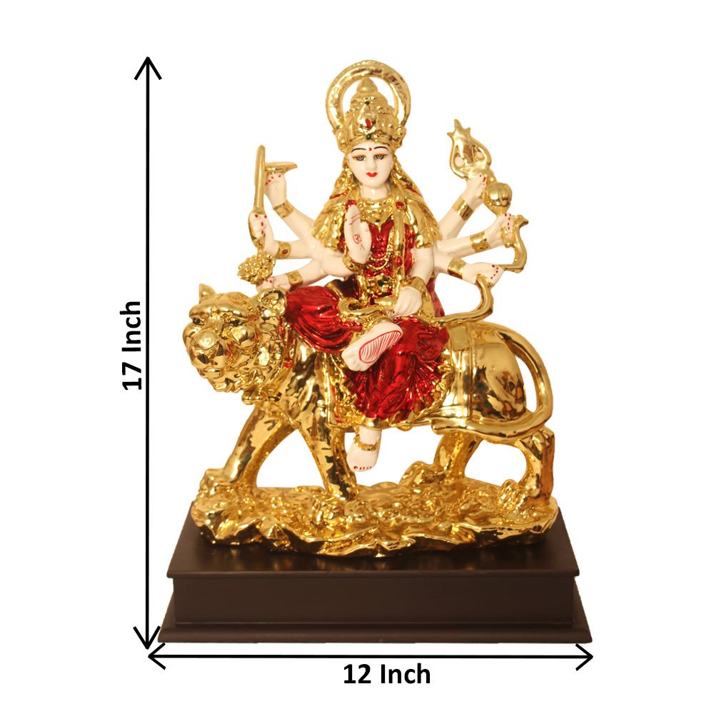 Make in India Gold Plated Durga Idol is made by professional artisans using high quality row material. Great look with unfadable color. Showpiece direct from factory at wholesale price This Showpiece is easily cleanable by wet/Dry Cotton Cloth.