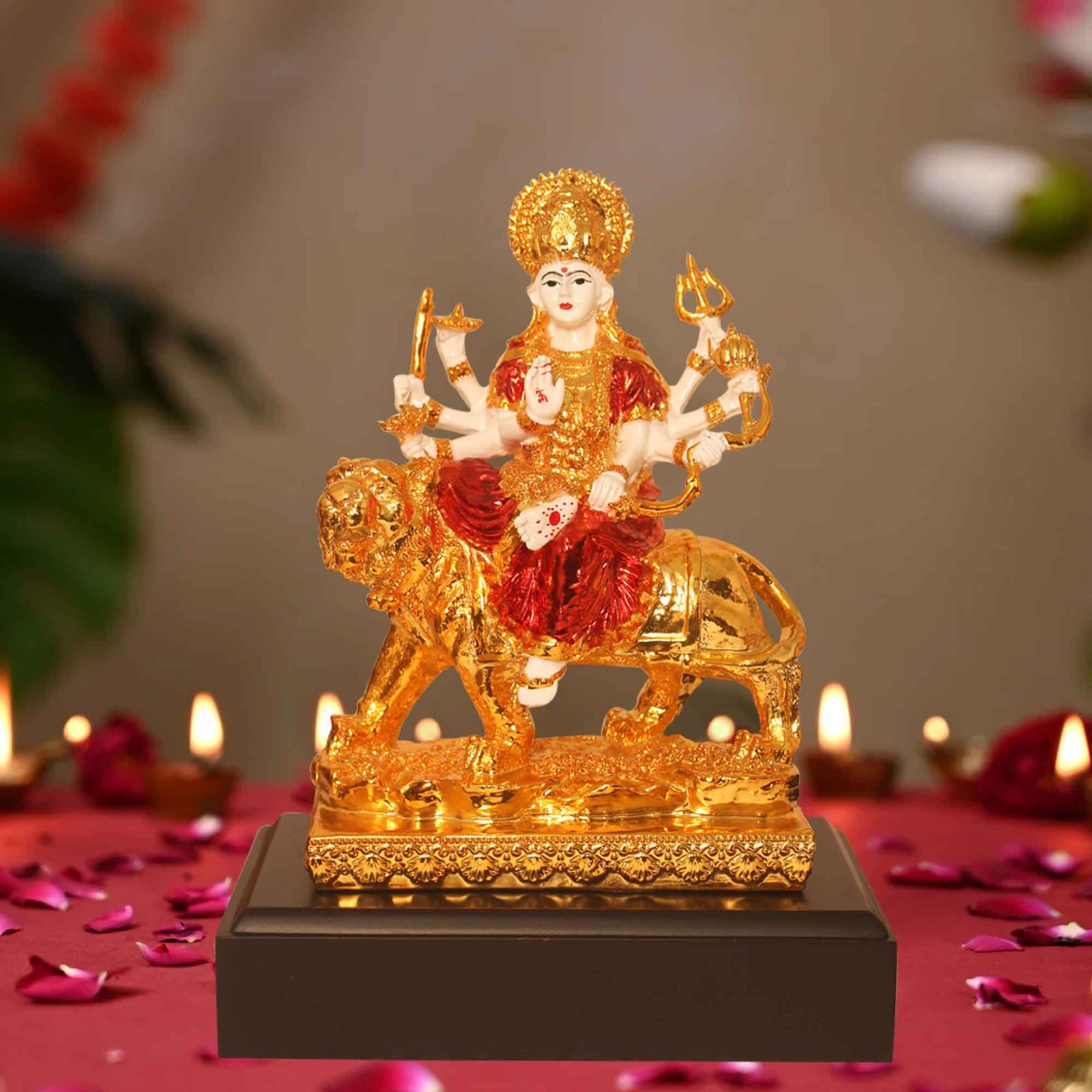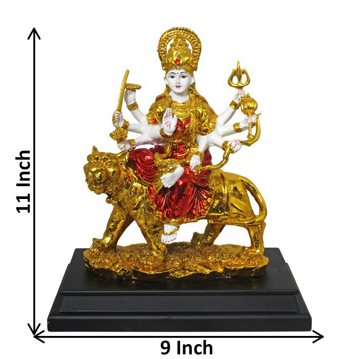 Make in India Gold Plated Durga is made by professional artisans using high quality row material. Great look with unfadable color. Showpiece direct from factory at wholesale price This Showpiece is easily cleanable by wet/Dry Cotton Cloth.