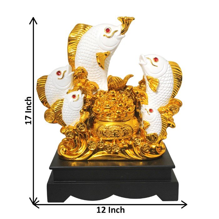 Make in India Gold Plated Fish Statue is made by professional artisans using high quality row material. Great look with unfadable color. Showpiece direct from factory at wholesale price This Showpiece is easily cleanable by wet/Dry Cotton Cloth.