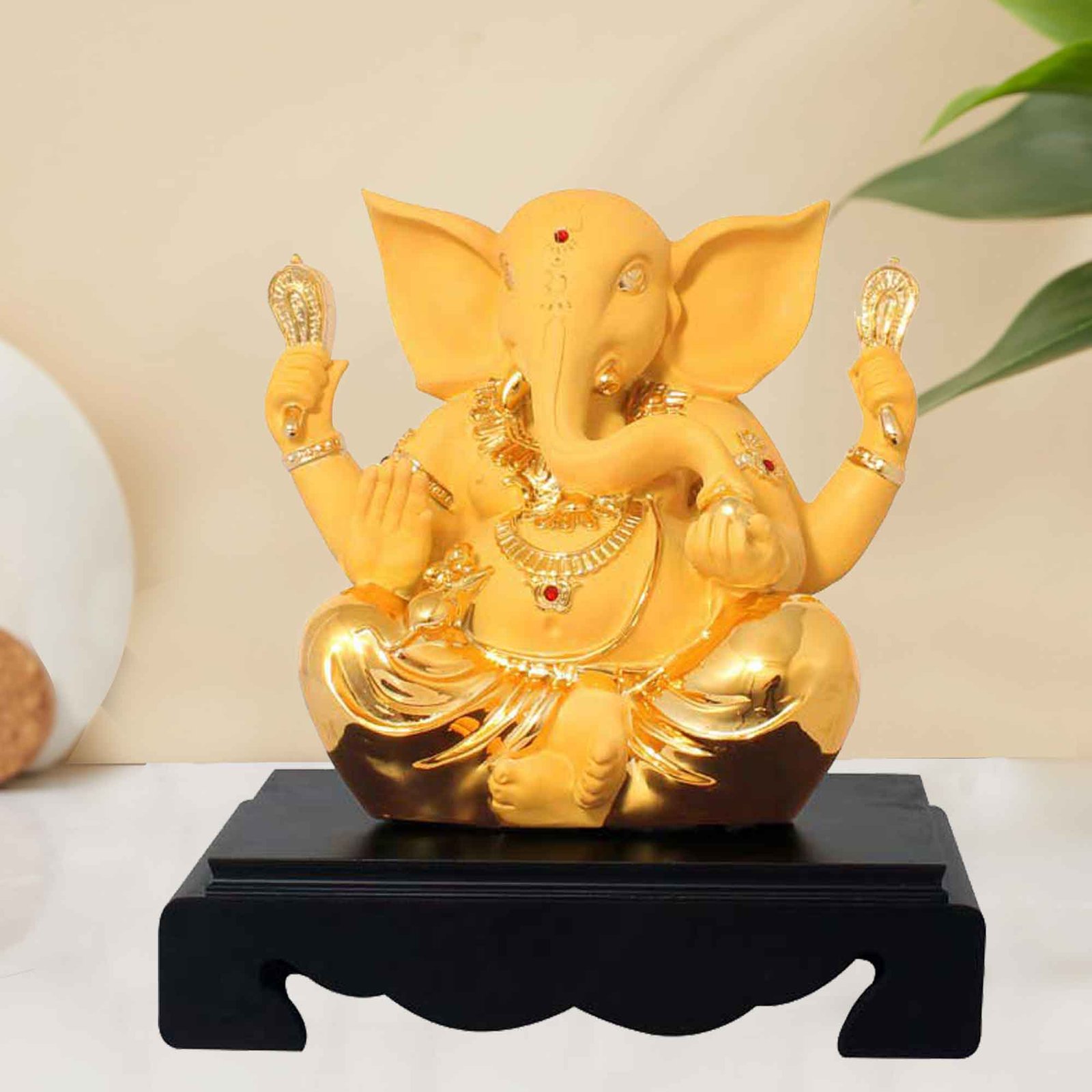 Gold Plated Ganesha Idol showpiece for home and Gift for Ganesh Chaturthi 22 cm ...