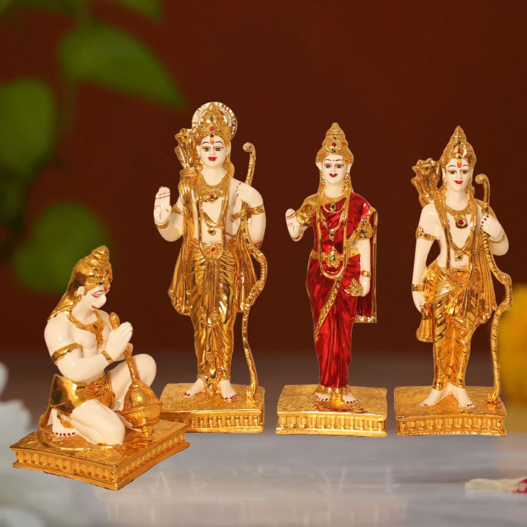Make in India Gold Plated God Ram Darbar is made by professional artisans using high quality row material. Great look with unfadable color. Showpiece direct from factory at wholesale price This Showpiece is easily cleanable by wet/Dry Cotton Cloth.