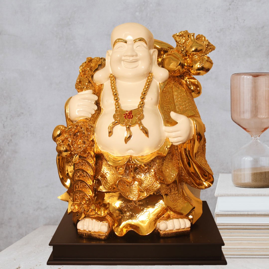 Gold Plated Laughing Buddha Statue showpiece for home and Birthday Gift 30 cm G2...