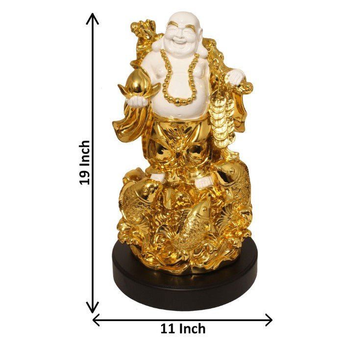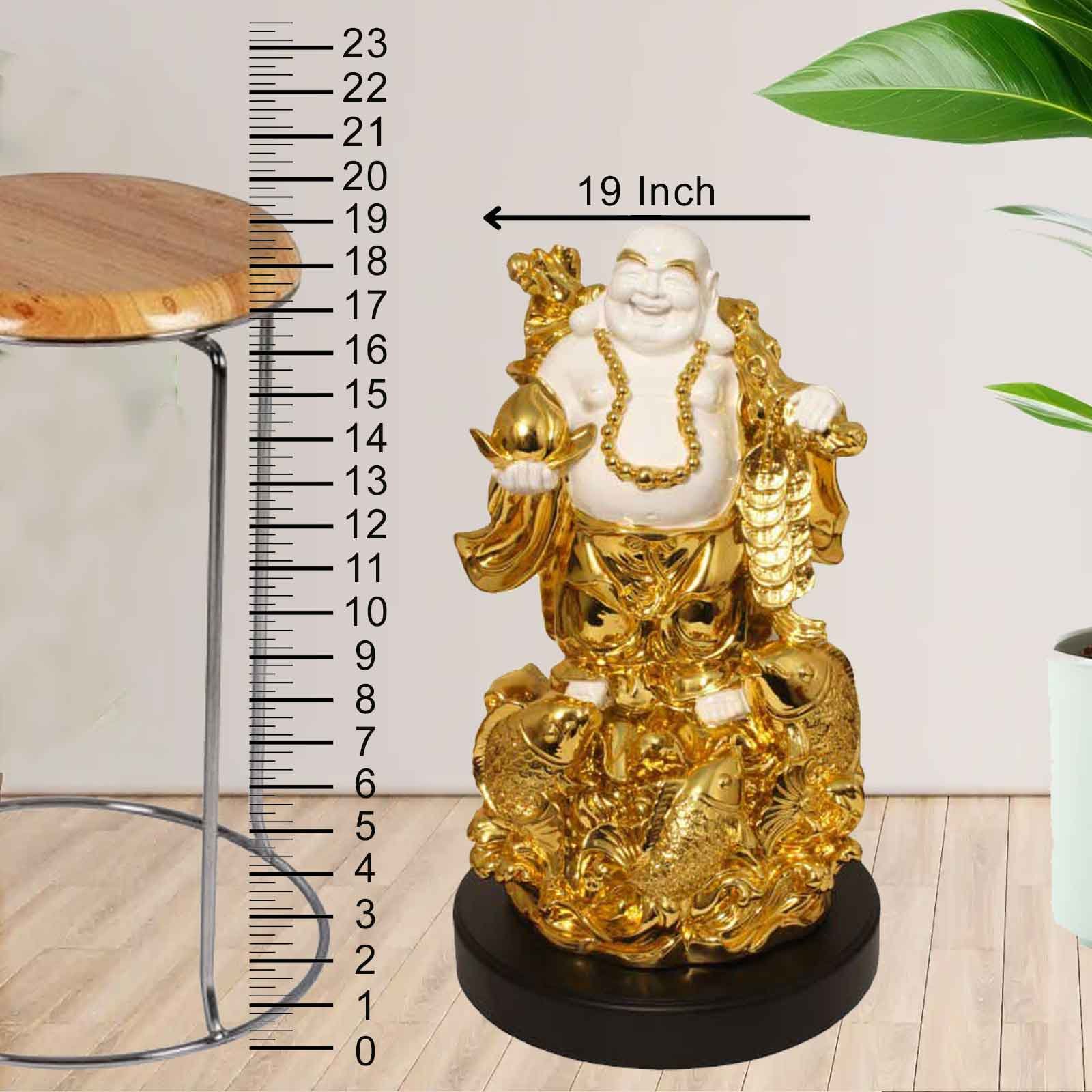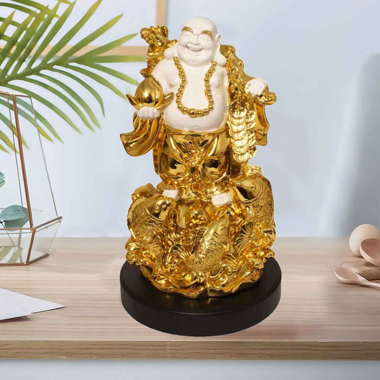 Gold Plated Laughing Buddha showpiece for home and Birthday Gift 27 cm G50GX0001...