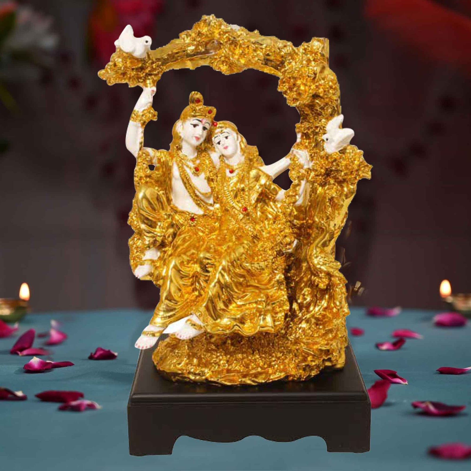 Make in India Gold Plated Jhula Radha Krishna is made by professional artisans using high quality row material. Great look with unfadable color. Showpiece direct from factory at wholesale price This Showpiece is easily cleanable by wet/Dry Cotton Cloth.