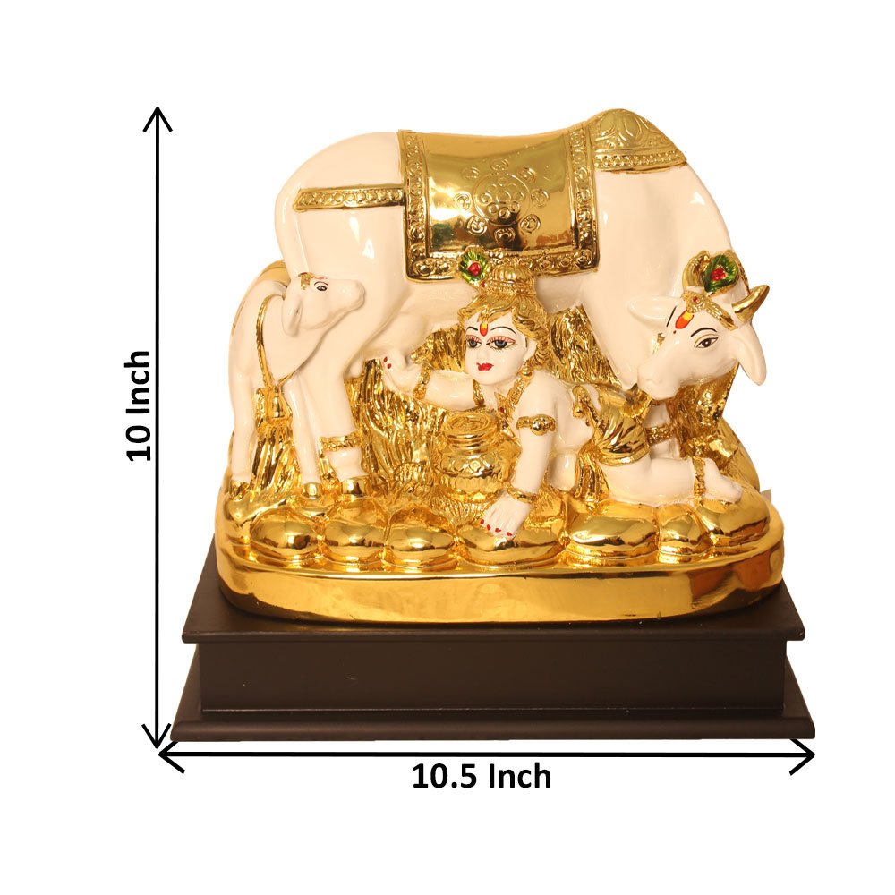 Make in India Gold Plated Krihsna and Cow is made by professional artisans using high quality row material. Great look with unfadable color. Showpiece direct from factory at wholesale price This Showpiece is easily cleanable by wet/Dry Cotton Cloth.