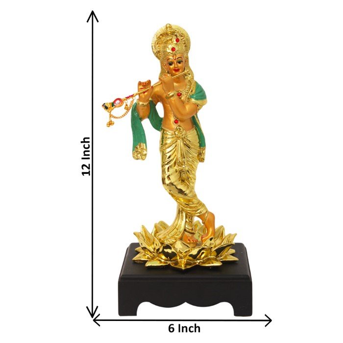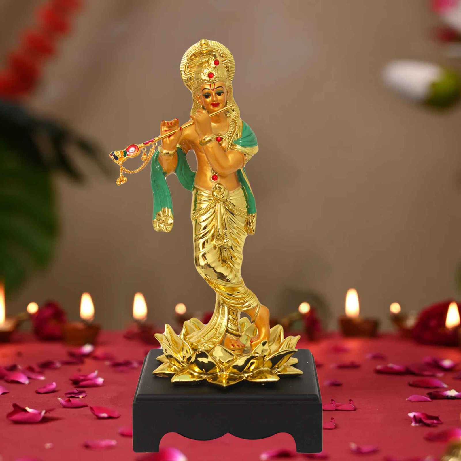 Make in India Gold Plated Krishna Idol is made by professional artisans using high quality row material. Great look with unfadable color. Showpiece direct from factory at wholesale price This Showpiece is easily cleanable by wet/Dry Cotton Cloth.
