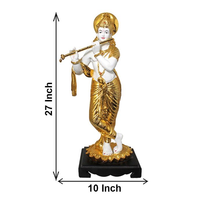 Make in India Gold Plated Krishna Statue is made by professional artisans using high quality row material. Great look with unfadable color. Showpiece direct from factory at wholesale price This Showpiece is easily cleanable by wet/Dry Cotton Cloth.