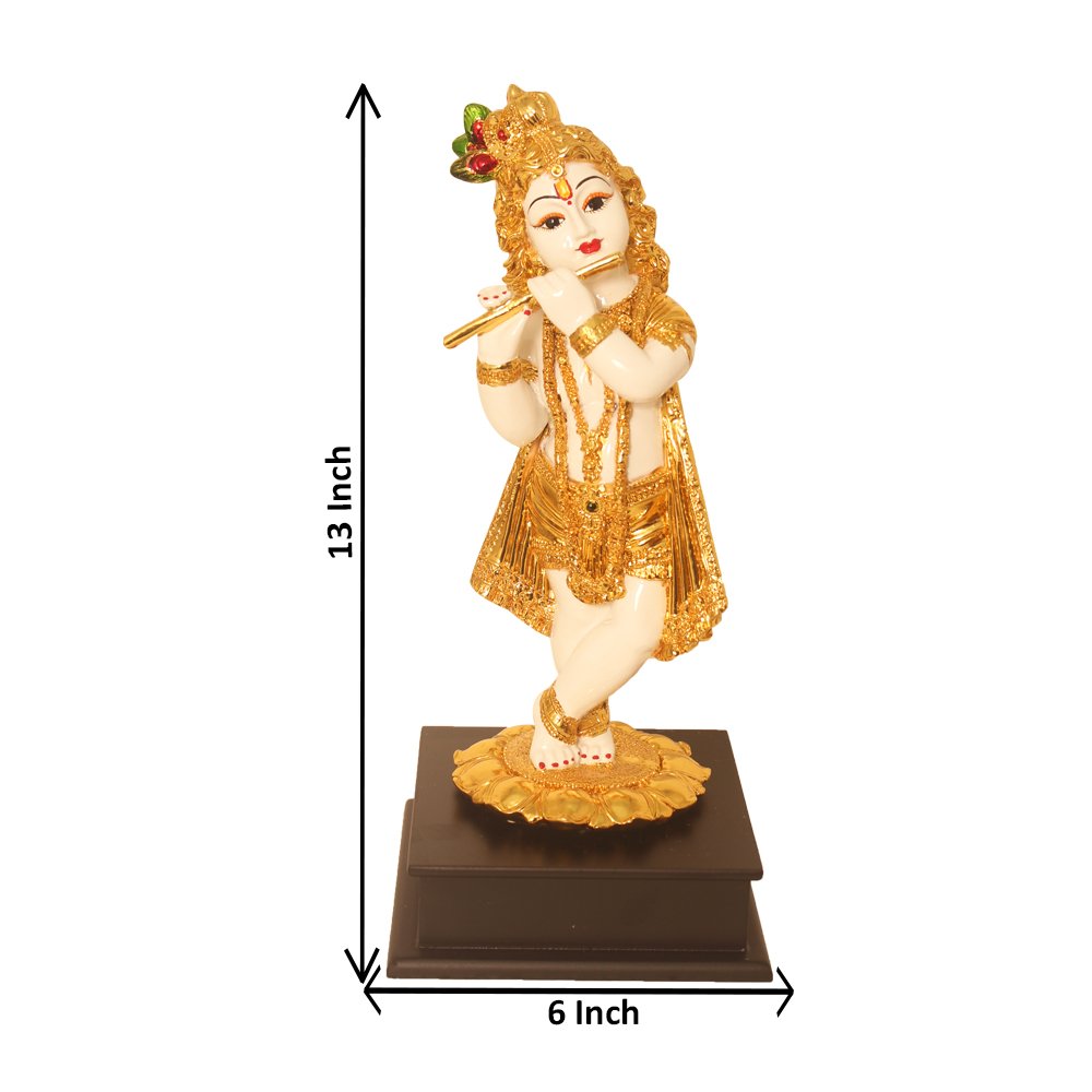 Make in India Gold Plated Krishna Statue is made by professional artisans using high quality row material. Great look with unfadable color. Showpiece direct from factory at wholesale price This Showpiece is easily cleanable by wet/Dry Cotton Cloth.