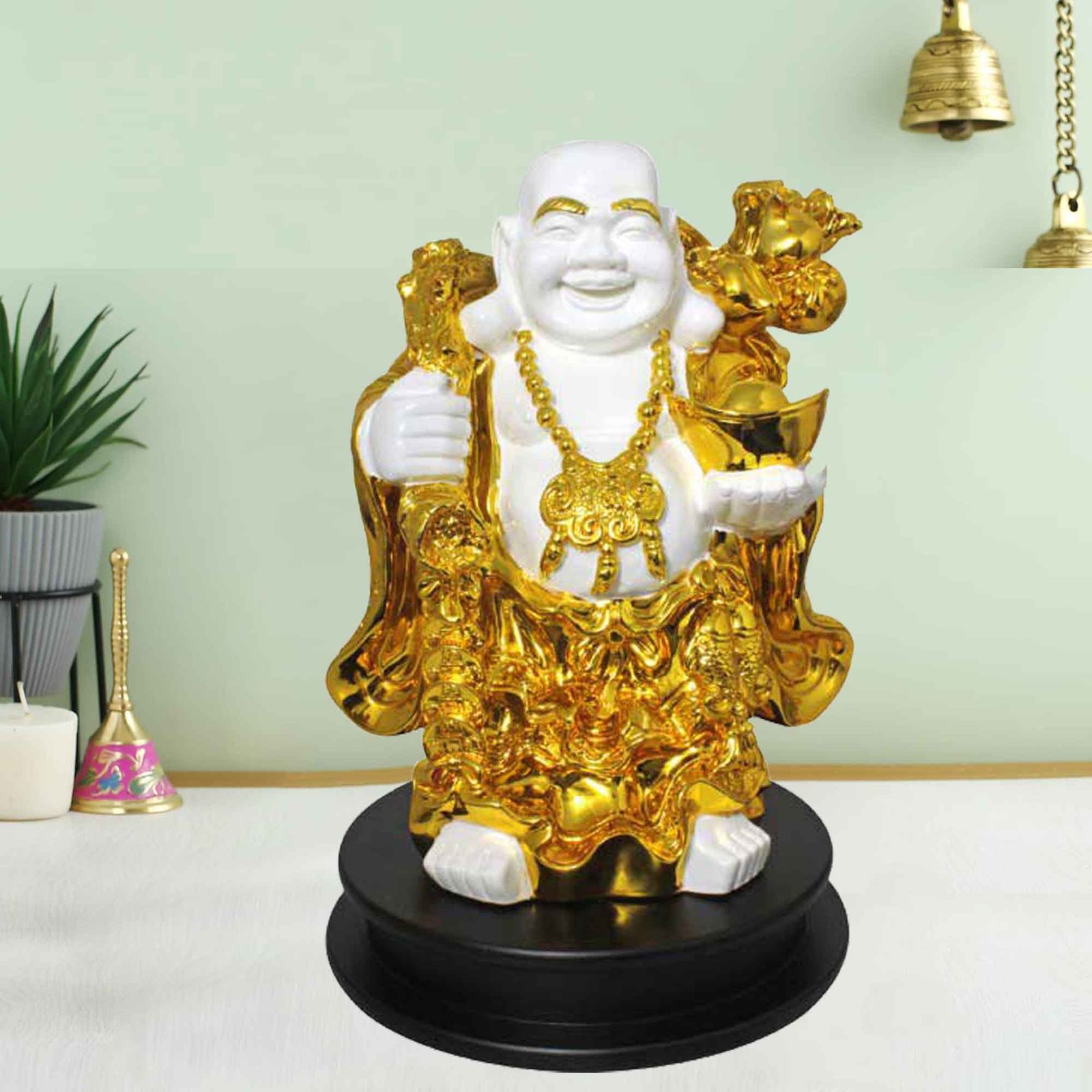Gold Plated Laughing Buddha statue for home decoration and Diwali Gift 31 cm G23...
