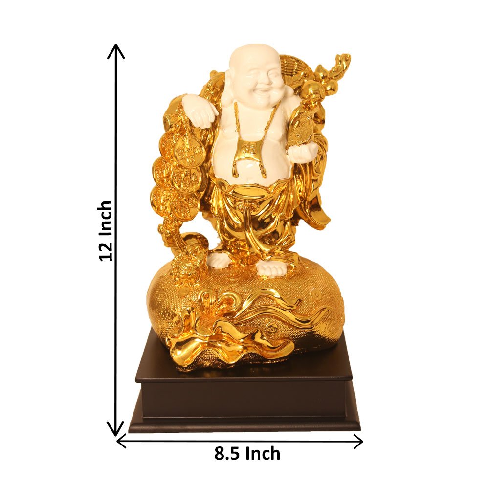 Make in India Gold Plated Laughing Buddha Statue is made by professional artisans using high quality row material. Great look with unfadable color. Showpiece direct from factory at wholesale price This Showpiece is easily cleanable by wet/Dry Cotton Cloth.