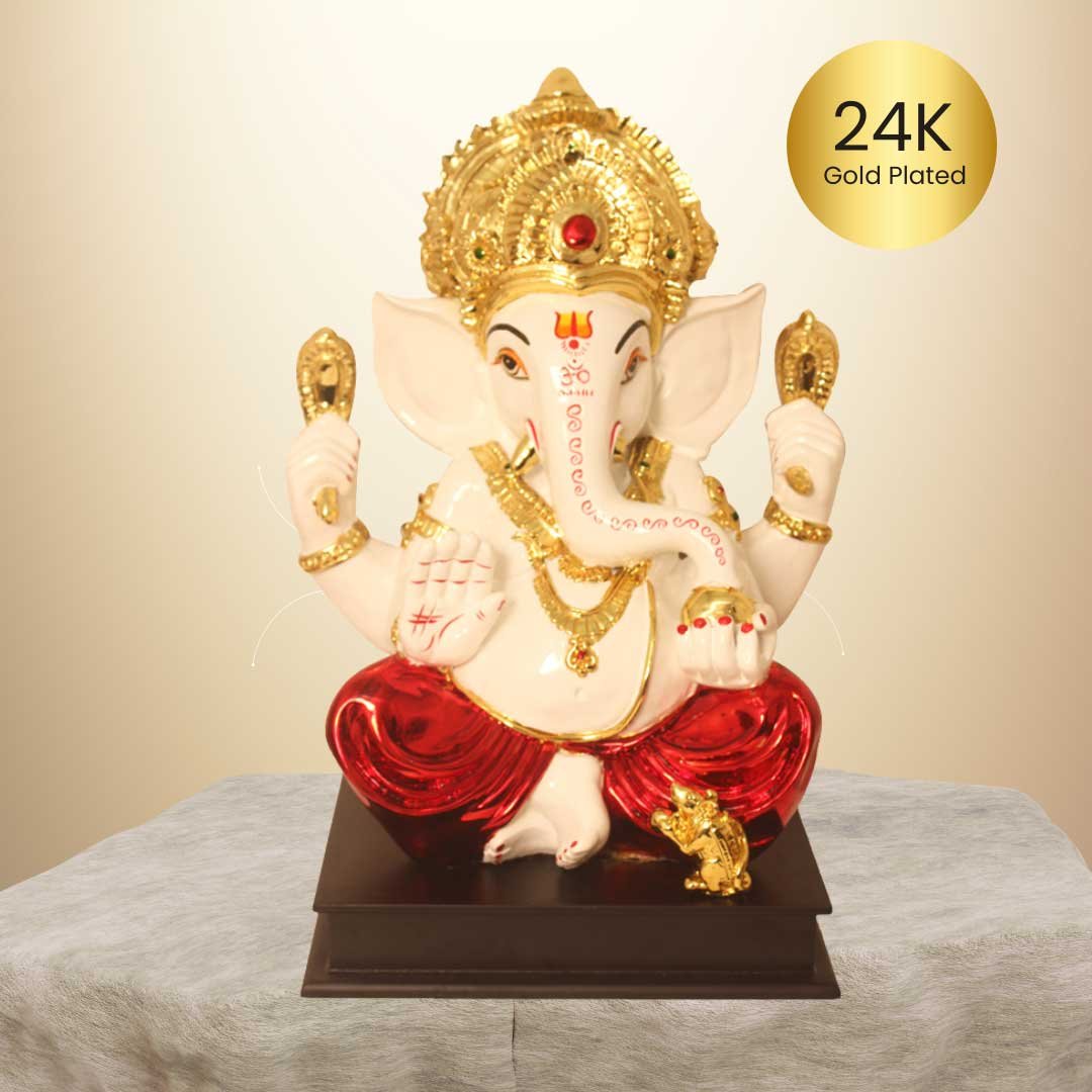 Make in India Gold Plated Lord Ganesha is made by professional artisans using high quality row material. Great look with unfadable color. Showpiece direct from factory at wholesale price This Showpiece is easily cleanable by wet/Dry Cotton Cloth.