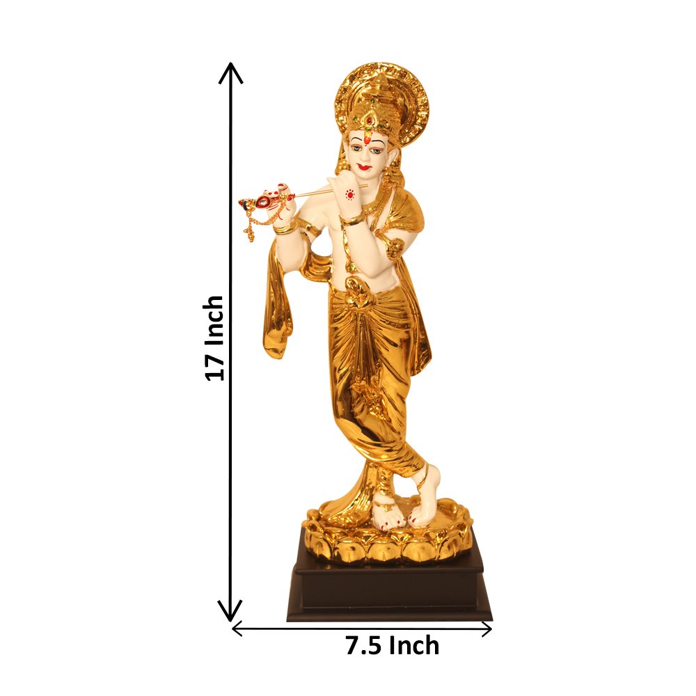 Make in India Gold Plated Lord Krishna is made by professional artisans using high quality row material. Great look with unfadable color. Showpiece direct from factory at wholesale price This Showpiece is easily cleanable by wet/Dry Cotton Cloth.