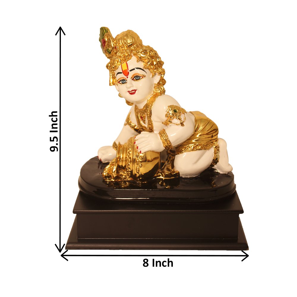 Make in India Gold Plated Makhan Krishna is made by professional artisans using high quality row material. Great look with unfadable color. Showpiece direct from factory at wholesale price This Showpiece is easily cleanable by wet/Dry Cotton Cloth.
