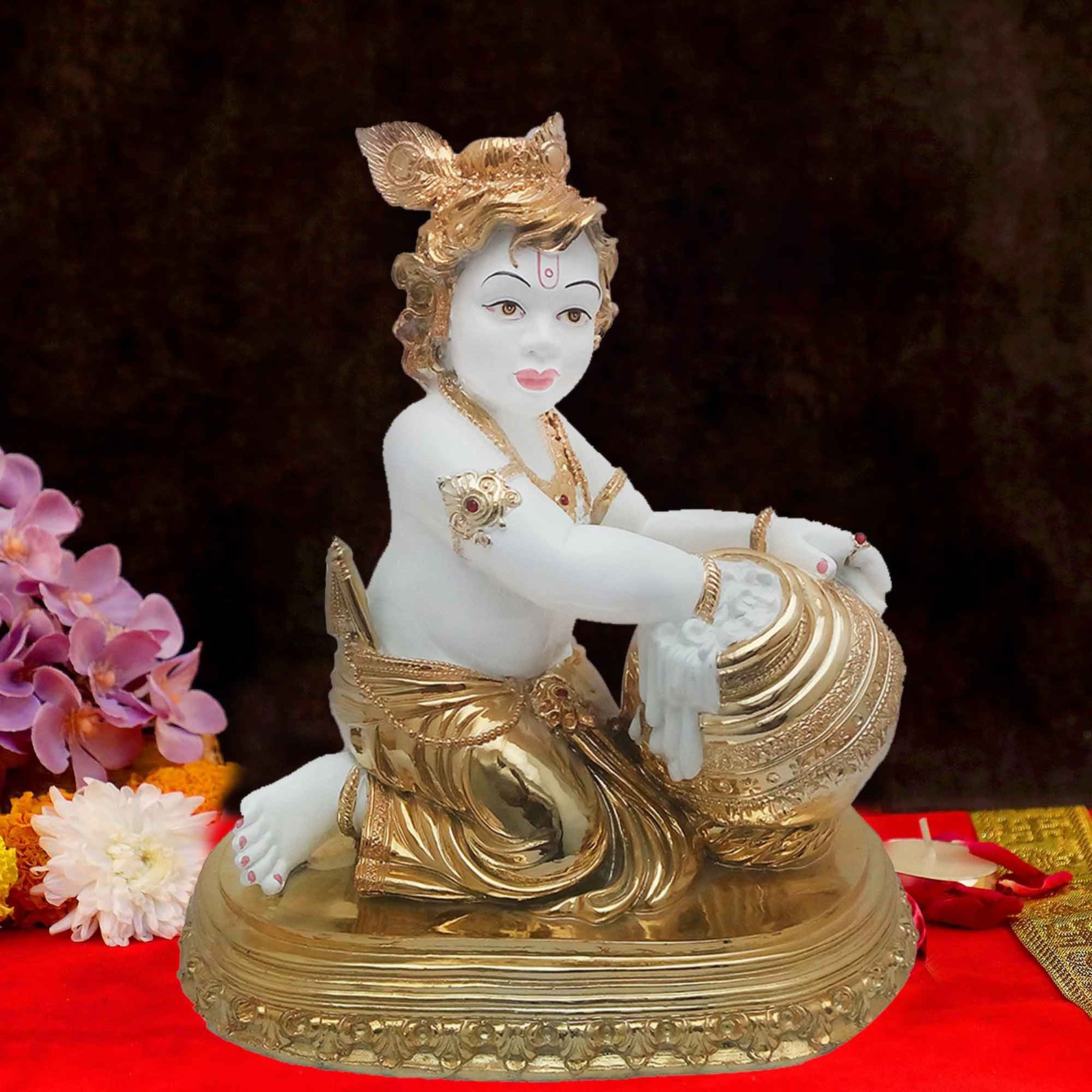 Make in India Gold Plated Makhan Krishna is made by professional artisans using high quality row material. Great look with unfadable color. Showpiece direct from factory at wholesale price This Showpiece is easily cleanable by wet/Dry Cotton Cloth.