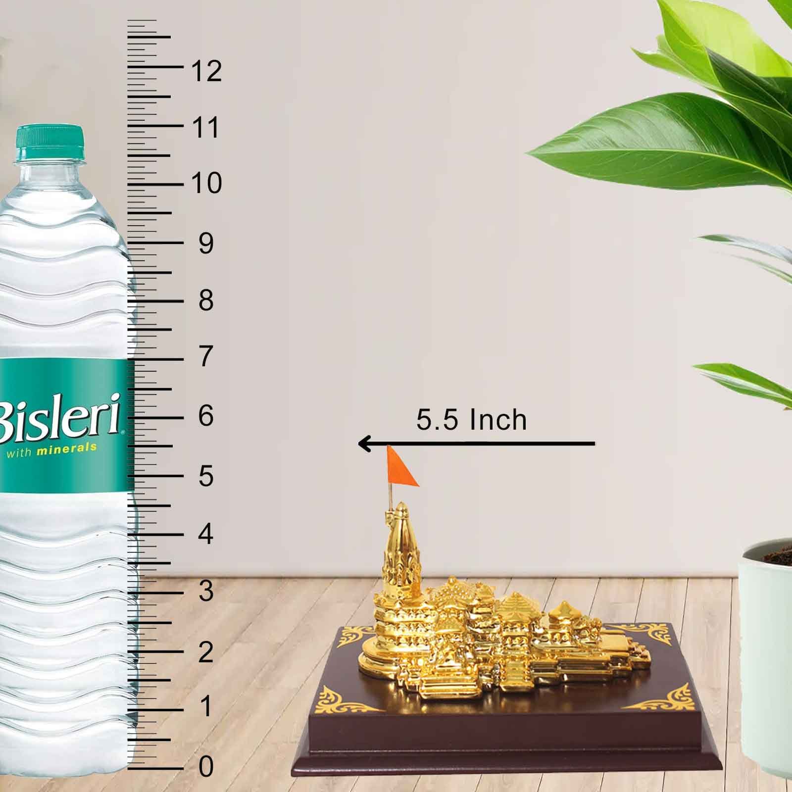 Gold Plated Ram Mandir showpiece for tv unit and Birthday Gift 14 cm G82GX0029G