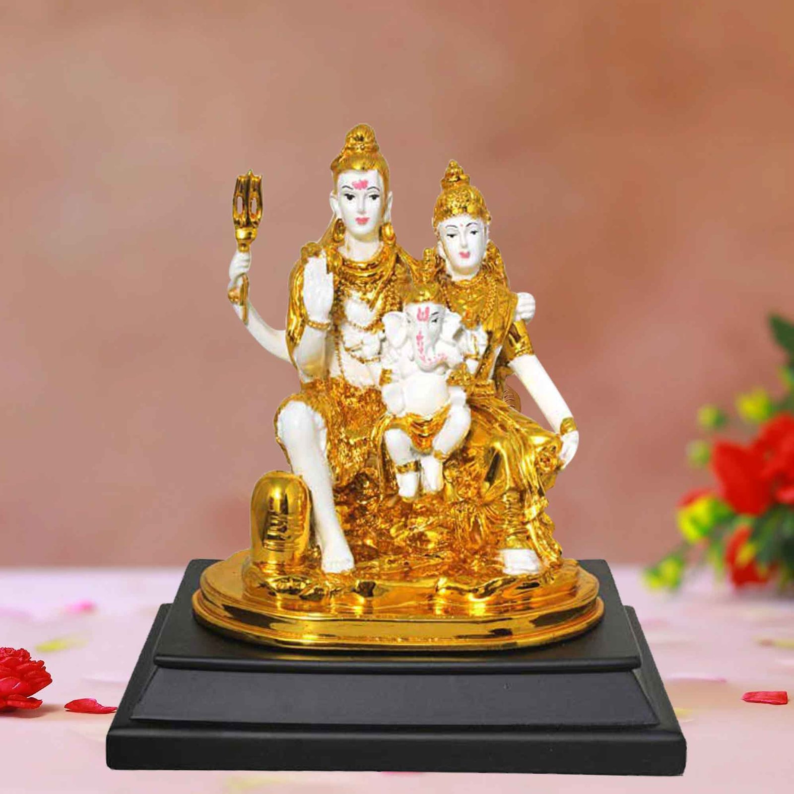 Make in India Gold Plated Shiv Parivaar is made by professional artisans using high quality row material. Great look with unfadable color. Showpiece direct from factory at wholesale price This Showpiece is easily cleanable by wet/Dry Cotton Cloth.