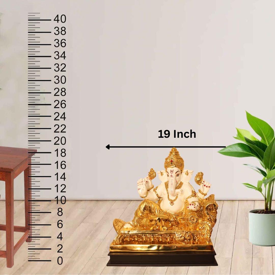 Make in India Gold Plated Singhasan Ganesh Statue is made by professional artisans using high quality row material. Great look with unfadable color. Showpiece direct from factory at wholesale price This Showpiece is easily cleanable by wet/Dry Cotton Cloth.