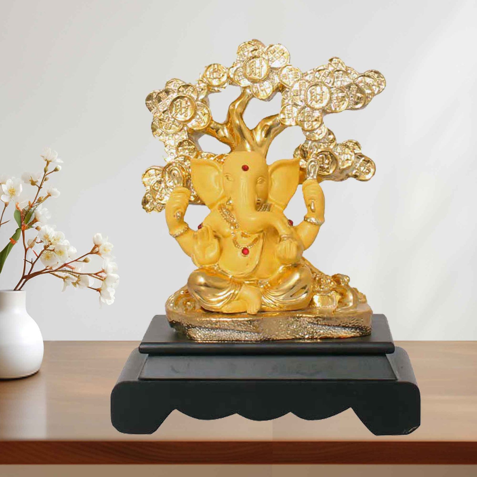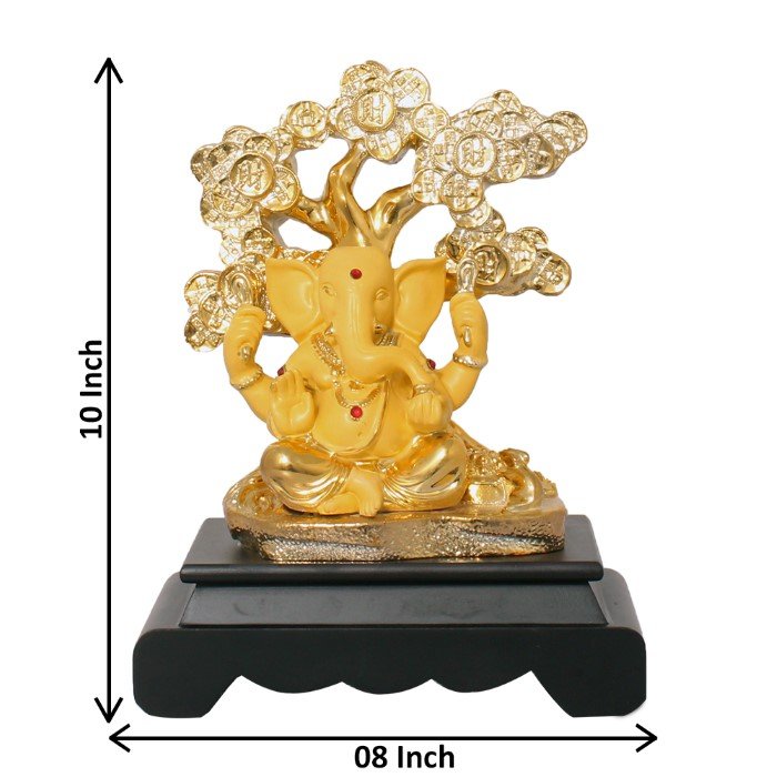 Make in India Gold Plated Tree Ganesha is made by professional artisans using high quality row material. Great look with unfadable color. Showpiece direct from factory at wholesale price This Showpiece is easily cleanable by wet/Dry Cotton Cloth.
