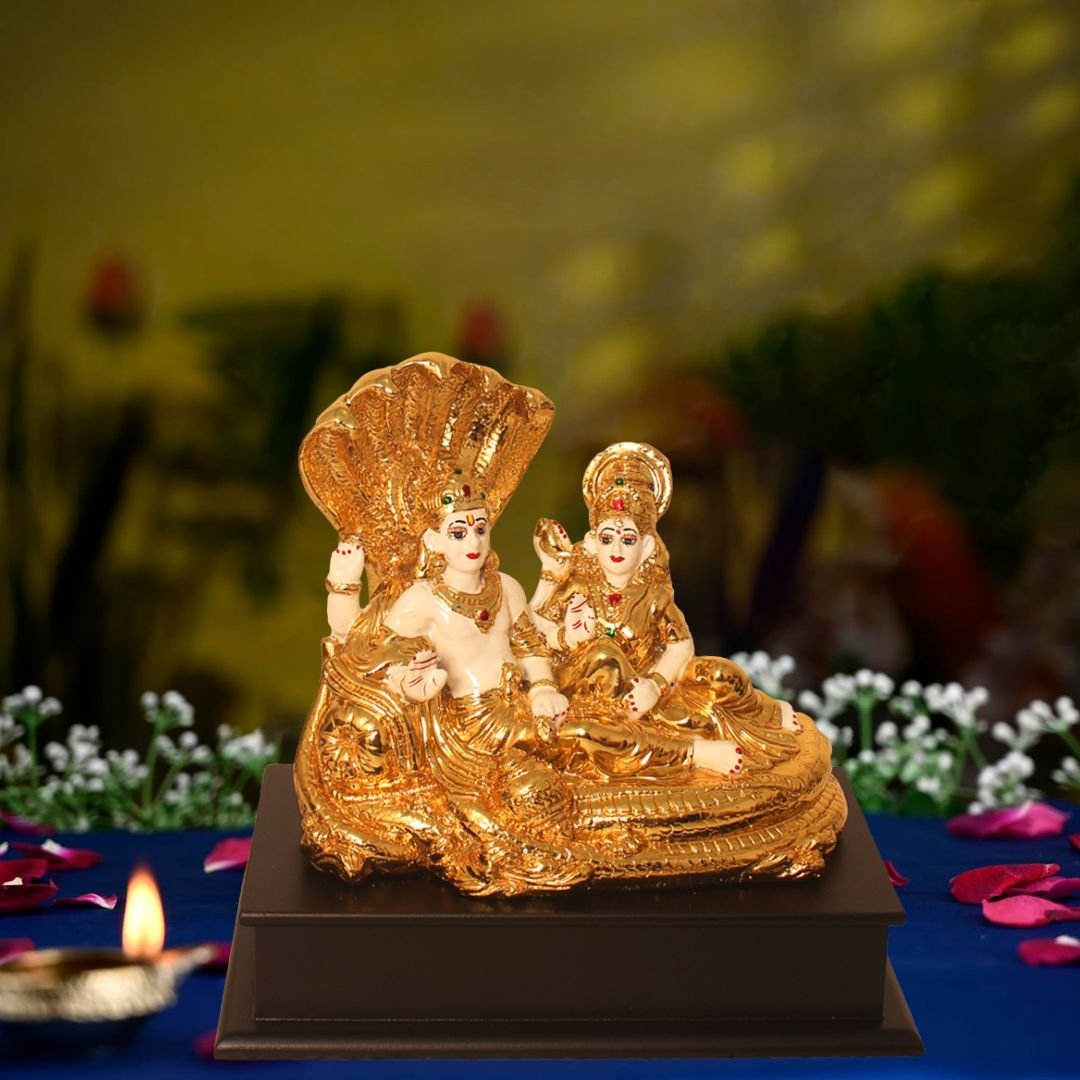 Make in India Gold Plated Vishnu Lakshmi is made by professional artisans using high quality row material. Great look with unfadable color. Showpiece direct from factory at wholesale price This Showpiece is easily cleanable by wet/Dry Cotton Cloth.
