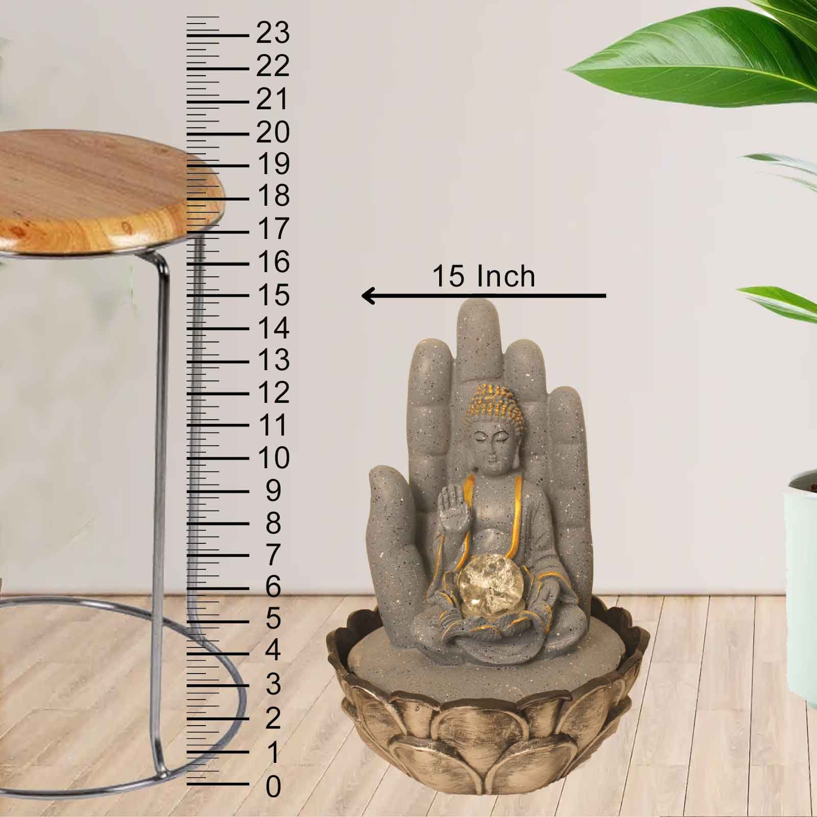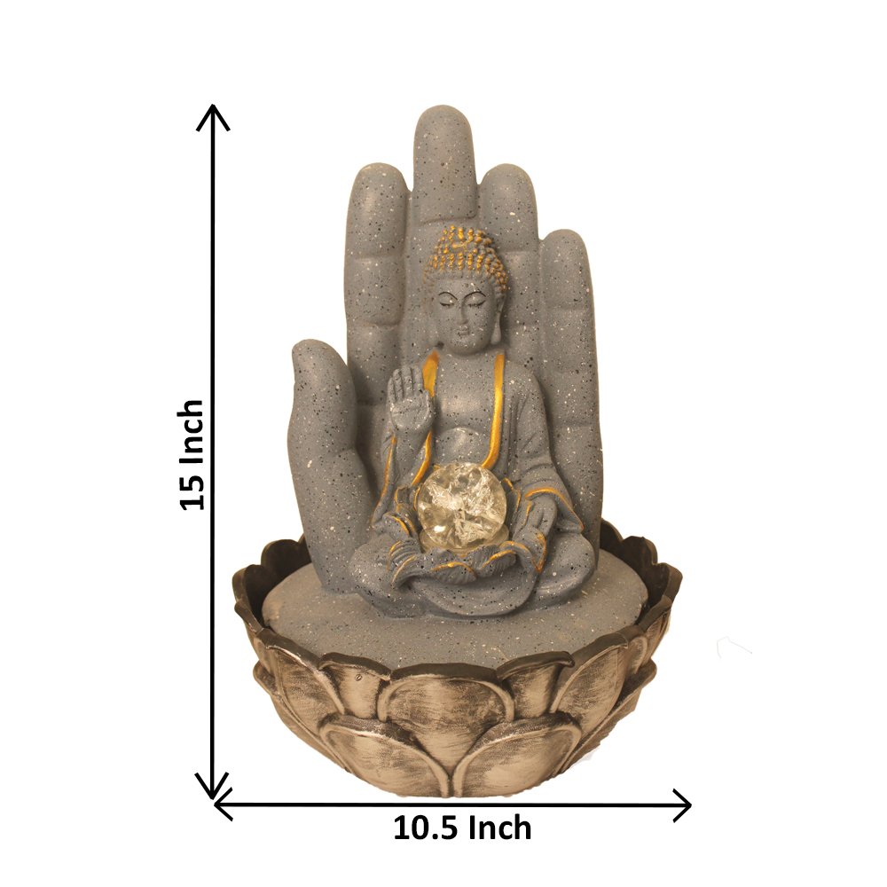 Hand Buddha indoor water fountain is a beautiful showpiece for home decor. This indoor water fountain not only looks great but also brings positivity to your space. Sound effect of water fountain helps create a positive and harmonious environment. As a home decorative water fountain, it adds a touch of elegance and peace to your living space. This Hand Buddha also makes for a wonderful decorative gift item for home decoration, ideal for housewarmings or special occasions. An indoor water fountain is best decoration and thoughtful gift. Whether placed in a living room, home, office, showroom, restaurant, hotel and wedding hall, the gentle sound of flowing water can enhance the beauty of area. As a gift, an indoor water fountain is not only visually appealing but also symbolizes harmony and balance. Water fountain is best ideal decorative gift choice as birthday, housewarming, office / shop inauguration, New Year, Wedding, Corporate Diwali gifts or any occasion.