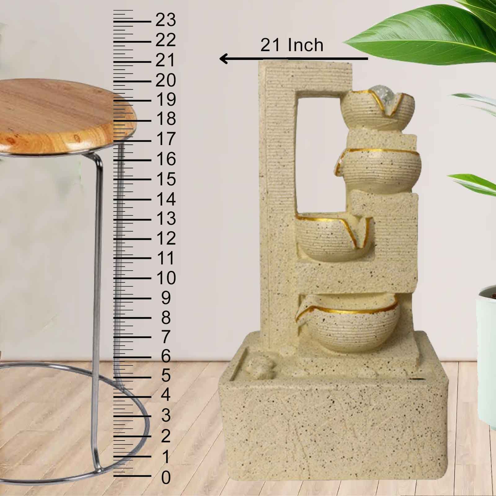 5 Steps Bowl tabletop waterfall fountain With Led Light - sandstone Finish 41 cm...