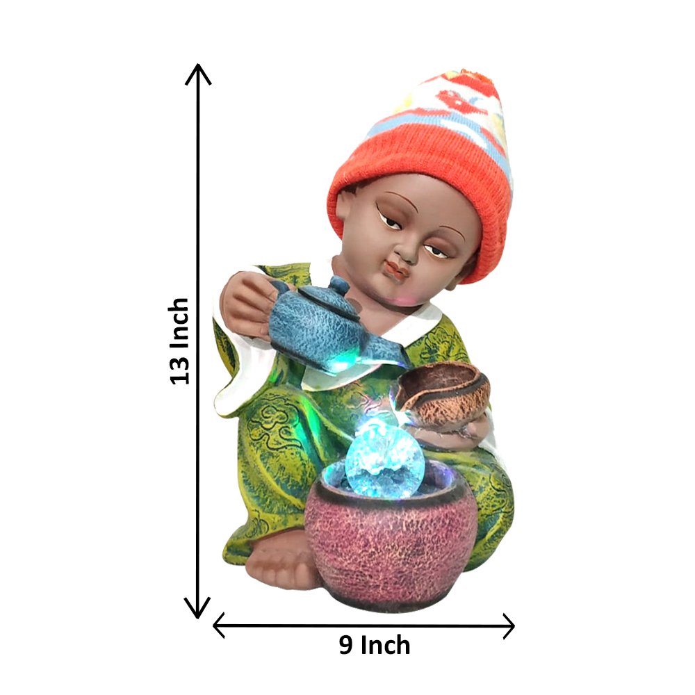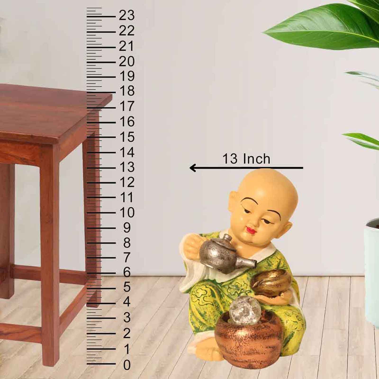 Baby Monk indoor water fountain is a beautiful showpiece for home decor. This indoor water fountain not only looks great but also brings positivity to your space. Sound effect of water fountain helps create a positive and harmonious environment. As a home decorative water fountain, it adds a touch of elegance and peace to your living space. This Baby Monk also makes for a wonderful decorative gift item for home decoration, ideal for housewarmings or special occasions. An indoor water fountain is best decoration and thoughtful gift. Whether placed in a living room, home, office, showroom, restaurant, hotel and wedding hall, the gentle sound of flowing water can enhance the beauty of area. As a gift, an indoor water fountain is not only visually appealing but also symbolizes harmony and balance. Water fountain is best ideal decorative gift choice as birthday, housewarming, office / shop inauguration, New Year, Wedding, Corporate Diwali gifts or any occasion.