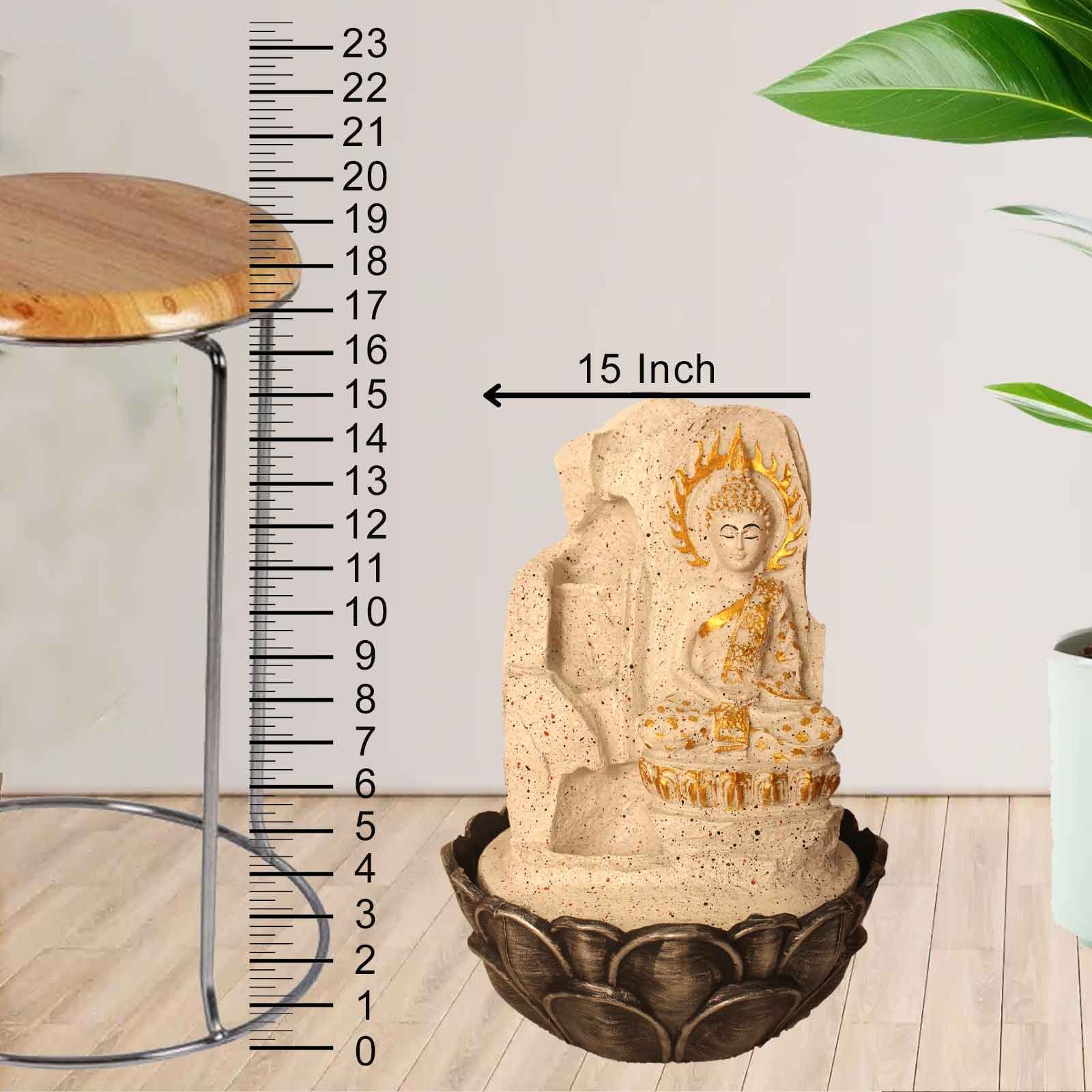 Meditation Buddha waterfall showpiece for living room With Led Light - Metalic A...