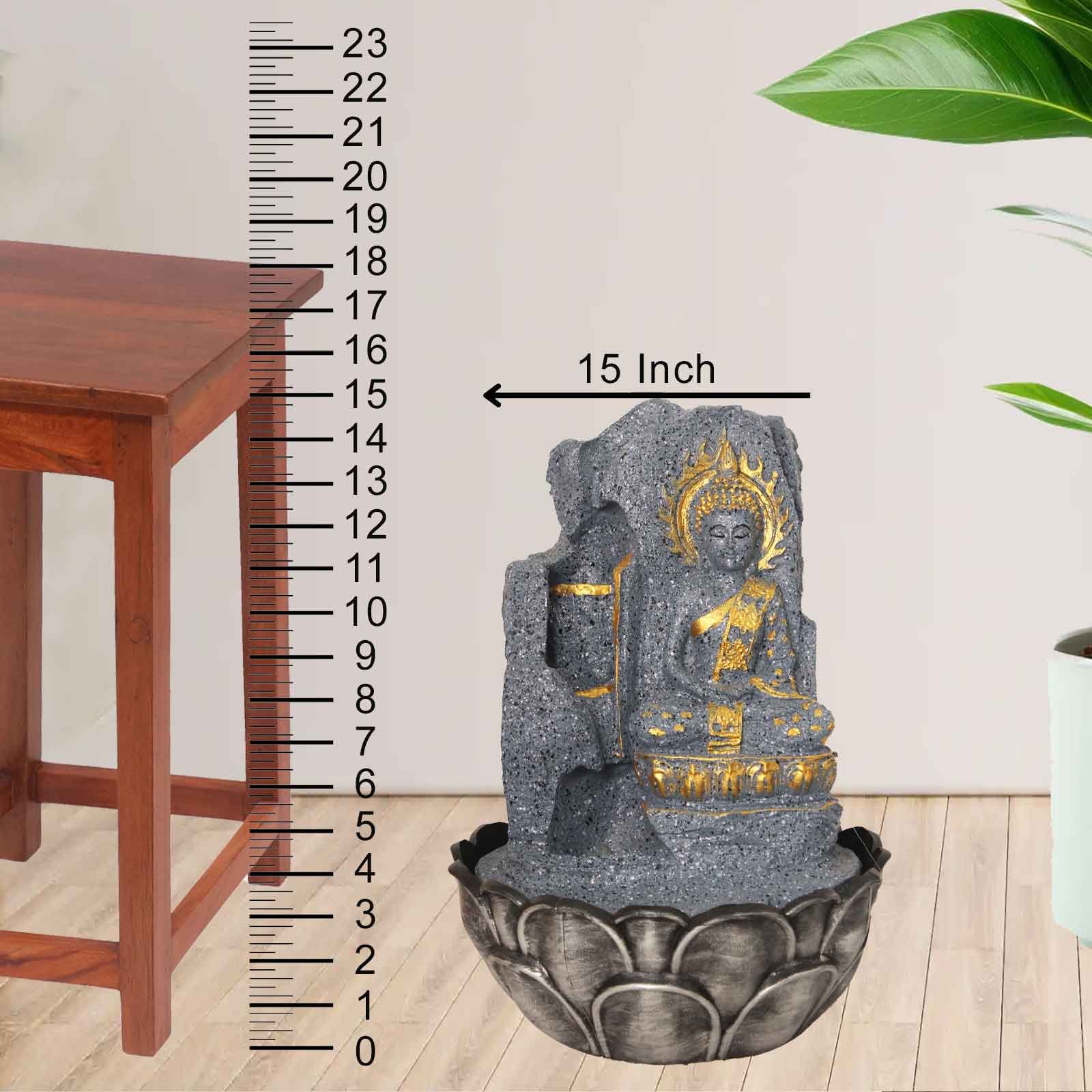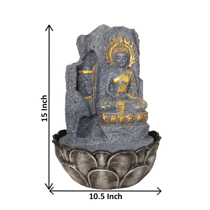 Floral Art Buddha water fountain for house With Led Light - Metalic Antique Fini...