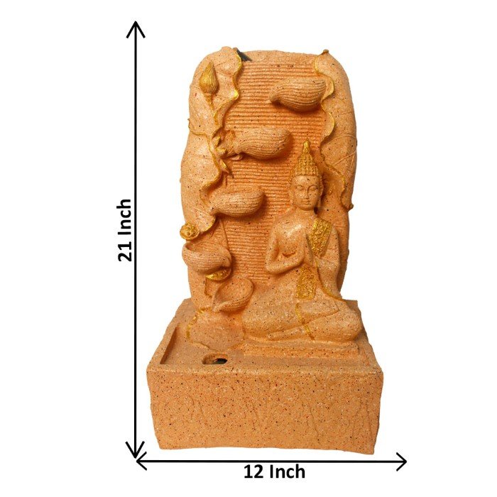 Gautam Buddha indoor water fountain is a beautiful showpiece for home decor. This indoor water fountain not only looks great but also brings positivity to your space. Sound effect of water fountain helps create a positive and harmonious environment. As a home decorative water fountain, it adds a touch of elegance and peace to your living space. This Gautam Buddha also makes for a wonderful decorative gift item for home decoration, ideal for housewarmings or special occasions. An indoor water fountain is best decoration and thoughtful gift. Whether placed in a living room, home, office, showroom, restaurant, hotel and wedding hall, the gentle sound of flowing water can enhance the beauty of area. As a gift, an indoor water fountain is not only visually appealing but also symbolizes harmony and balance. Gautam Buddha Water fountain is best ideal decorative gift choice as birthday, housewarming, office / shop inauguration, New Year, Wedding, Corporate Diwali gifts or any occasion.