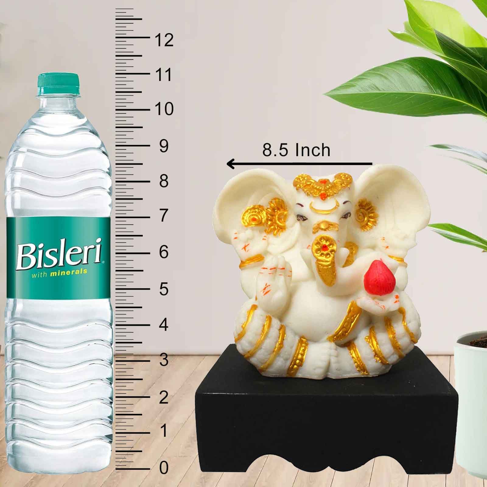 Handicraft Ganesha miniature decorative items Marble Look with Wooden Base 22 cm G57GW1121WGCMX
