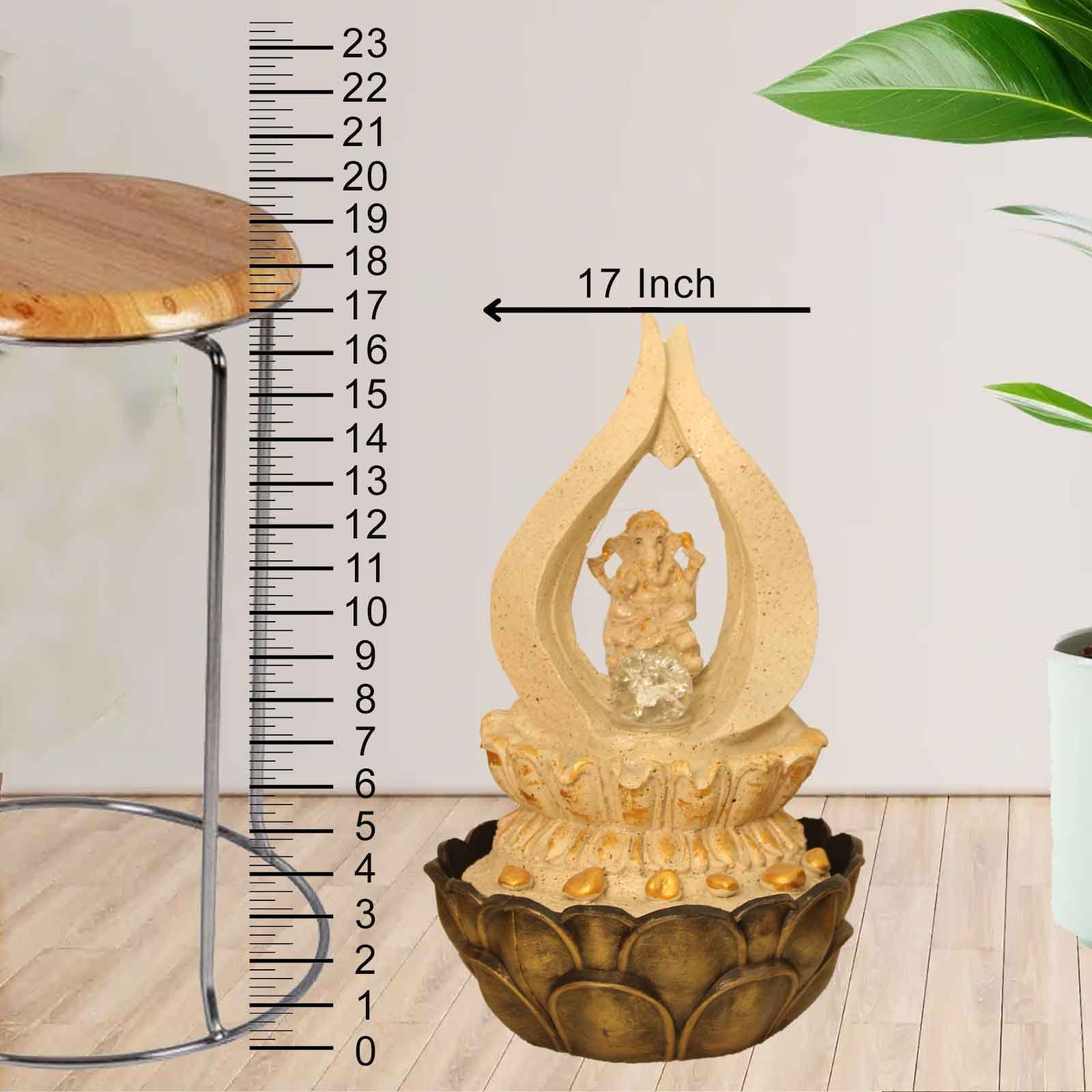 Ganpati Diya indoor waterfall fountain With Led Light - sandstone Finish 25 cm G...
