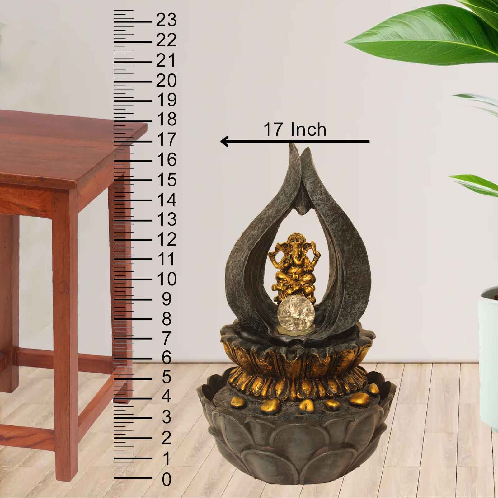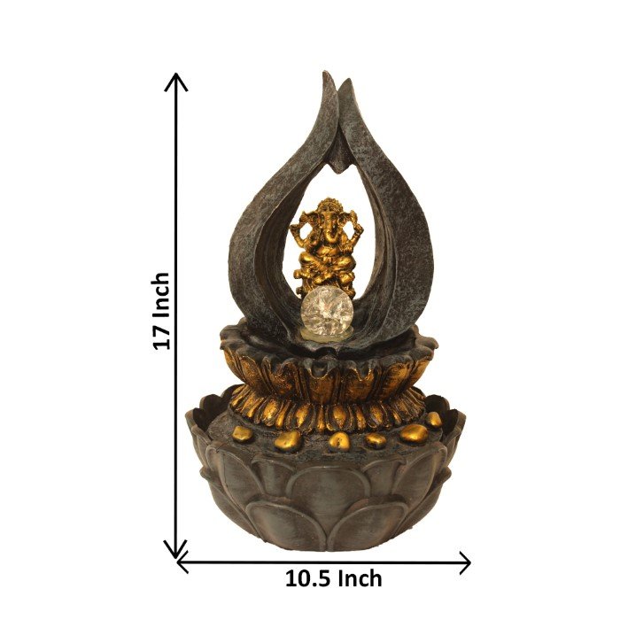 Lotus Diya Ganesha small water fountain With Led Light - Metalic Antique Finish ...