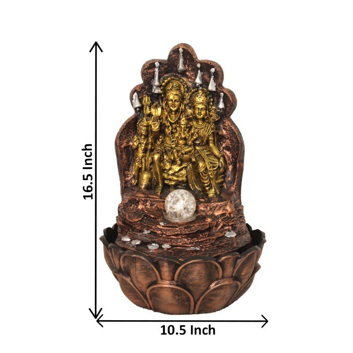 Handicraft Shiv Parivar best indoor water fountain With Led Light & Crystal Ball - Metalic Antique Finish 42 cm G57GX0507MGAMX