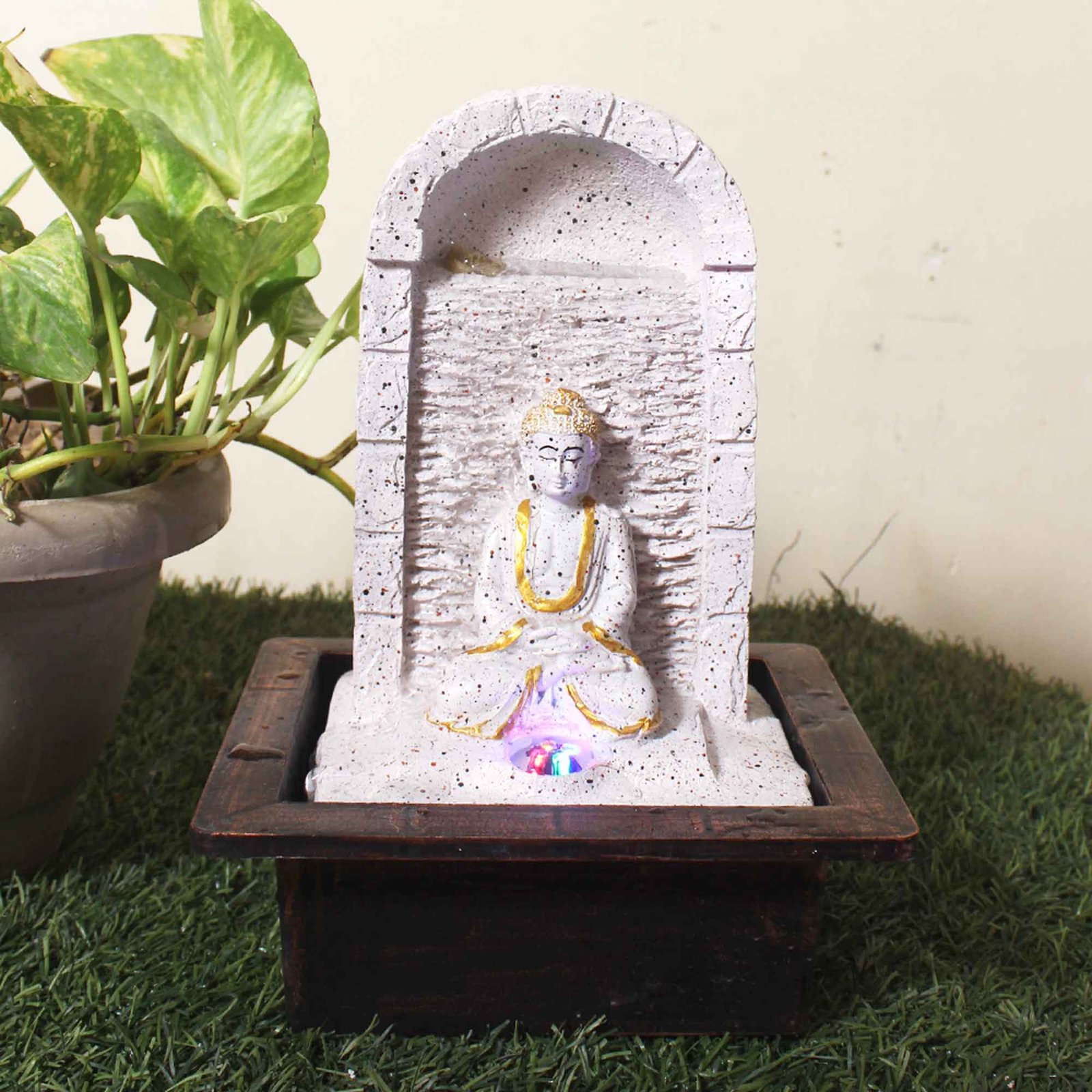 Jharna Buddha corner water fountain for home decor Small Size With Led Light - sandstone Finish 28 cm G57GX0485PGDMX