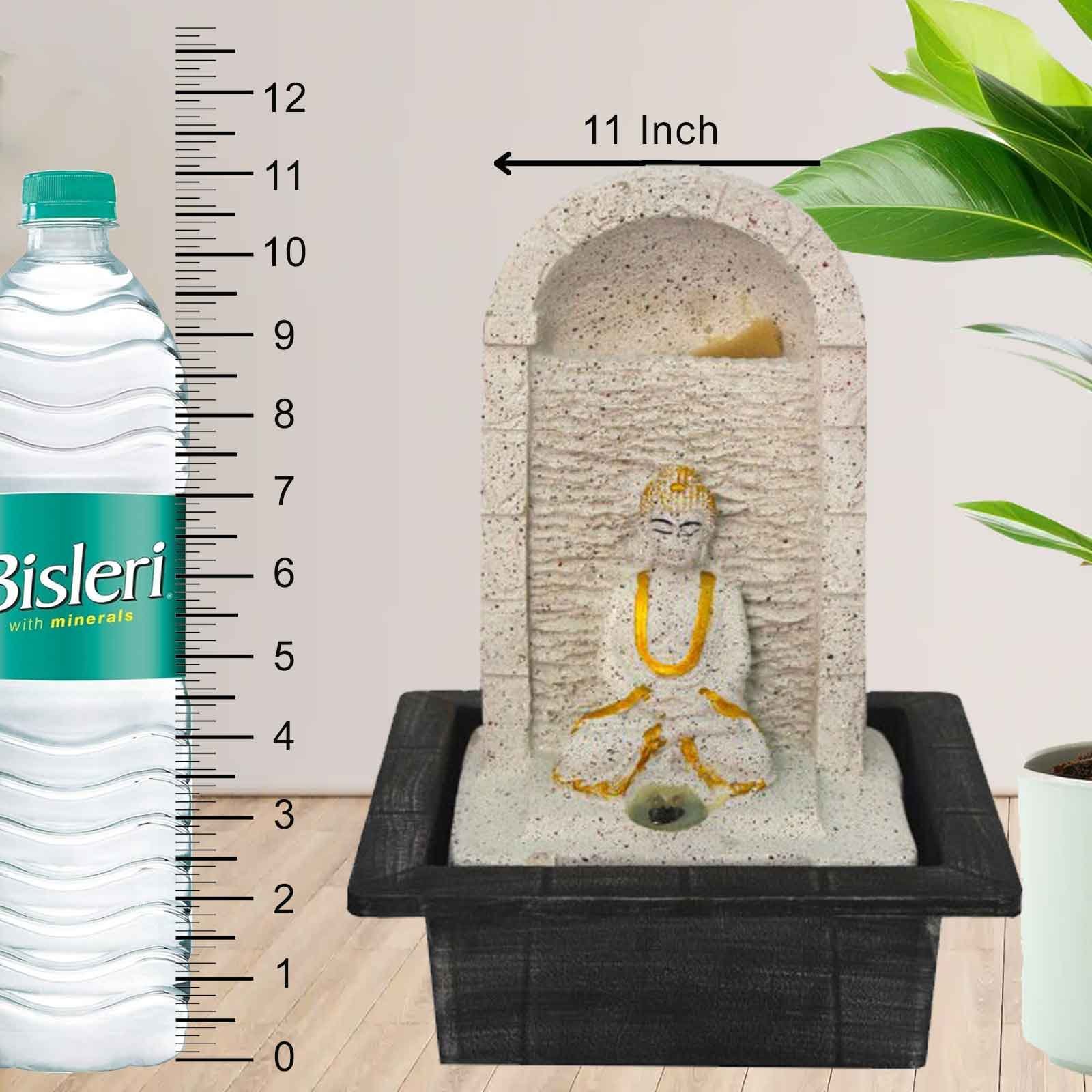 Marble Dust Buddha tabletop water fountain for home With Led Light - Metalic Ant...